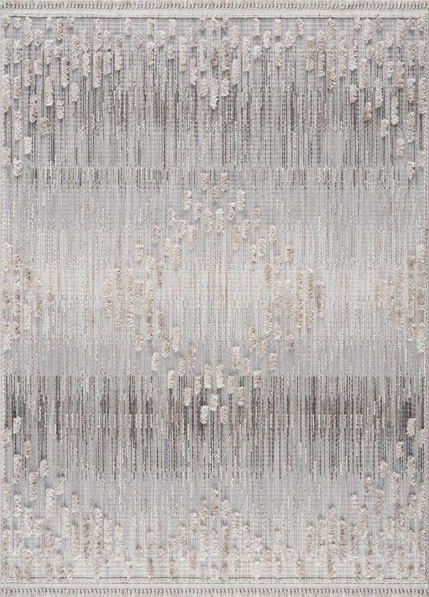 Modern Geometrical Gray, Silver and Charcoal high low texture area rug