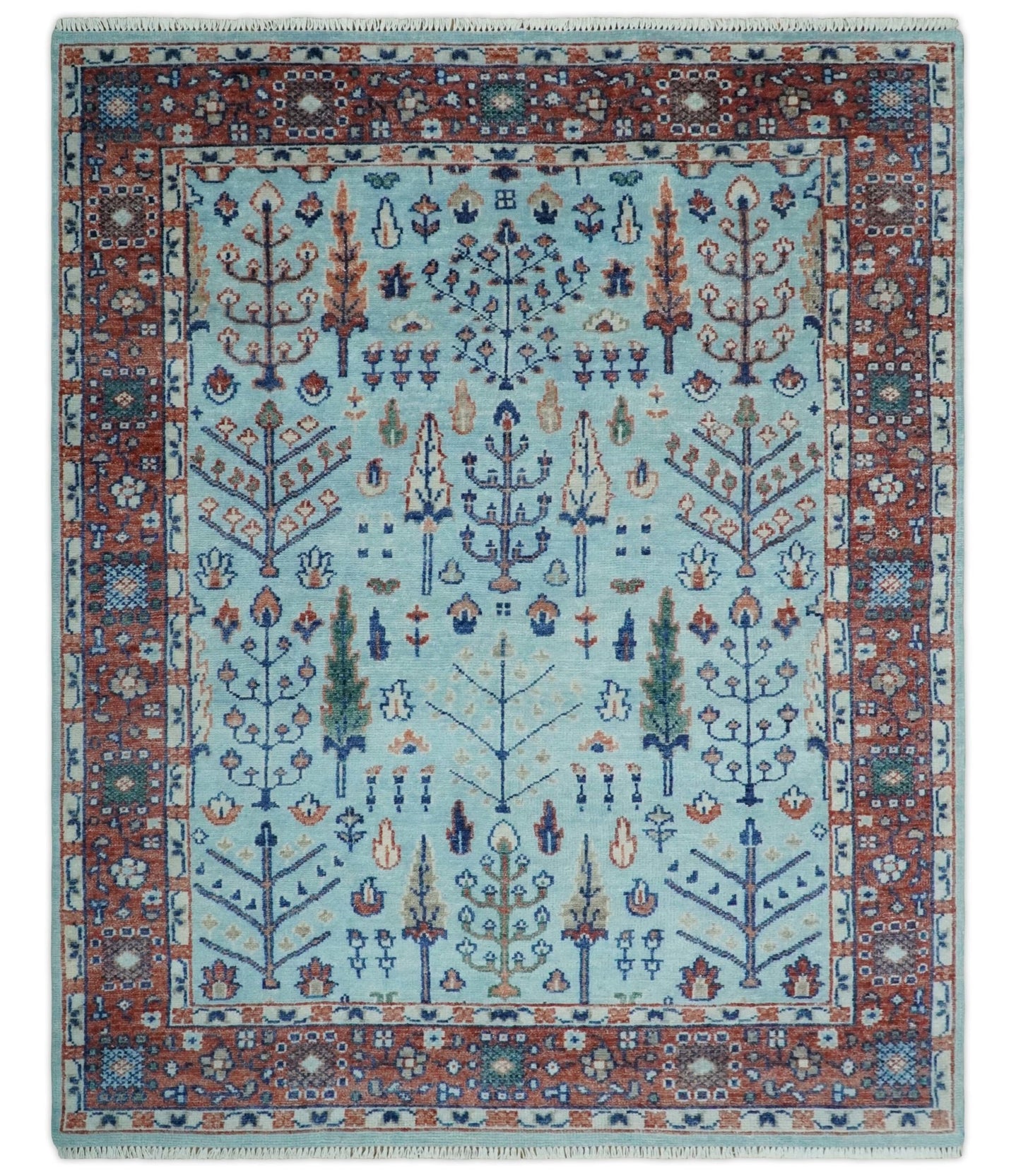 Custom Made Traditional Floral Green and Aqua Hand Knotted wool area rug