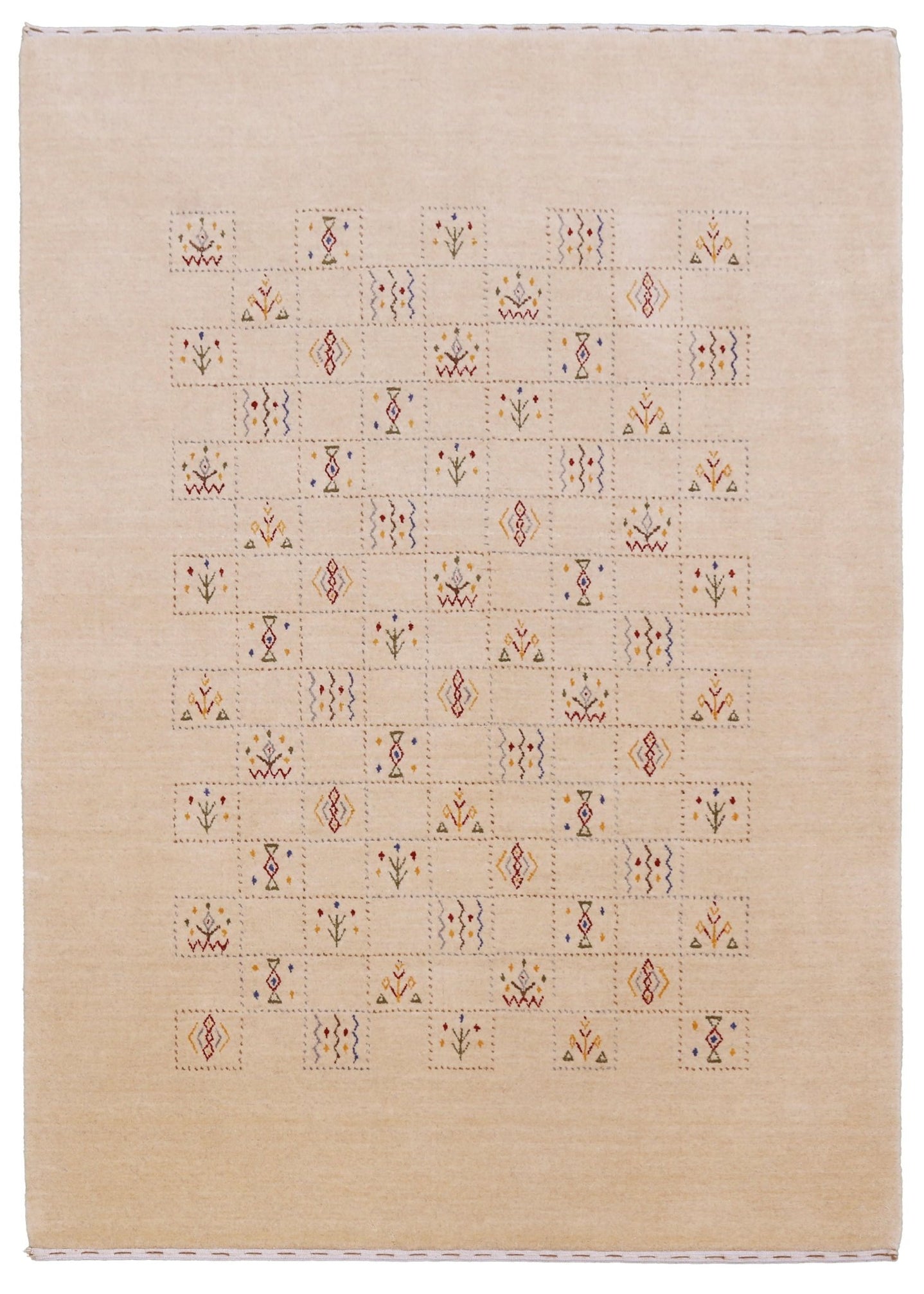 Beige Contemporary Tribal Design Hand Loomed Wool Rug