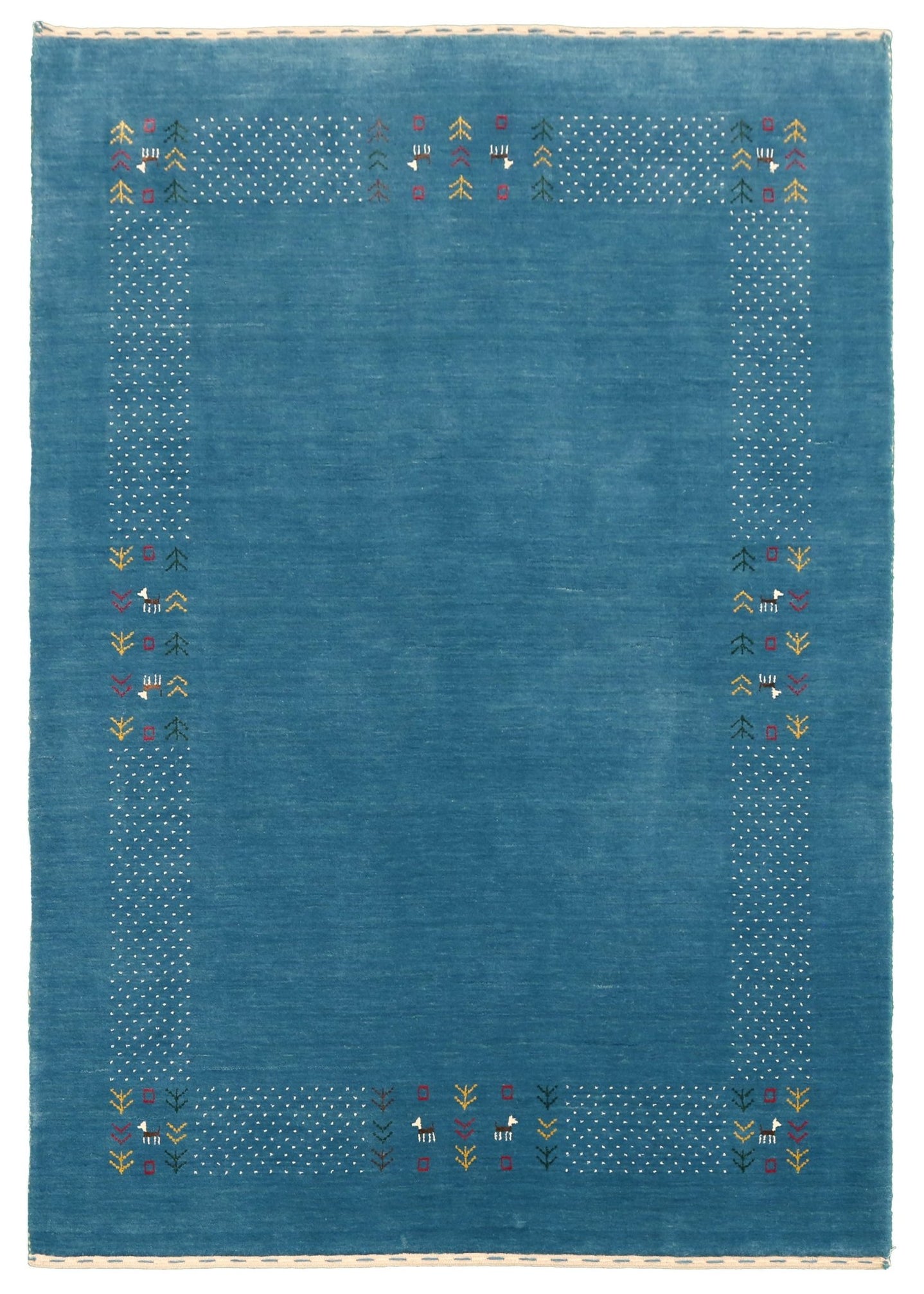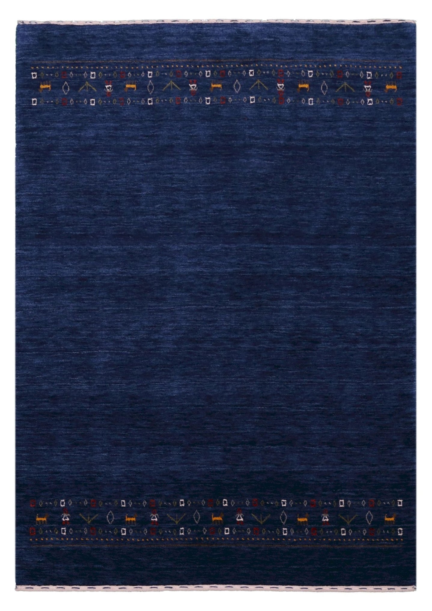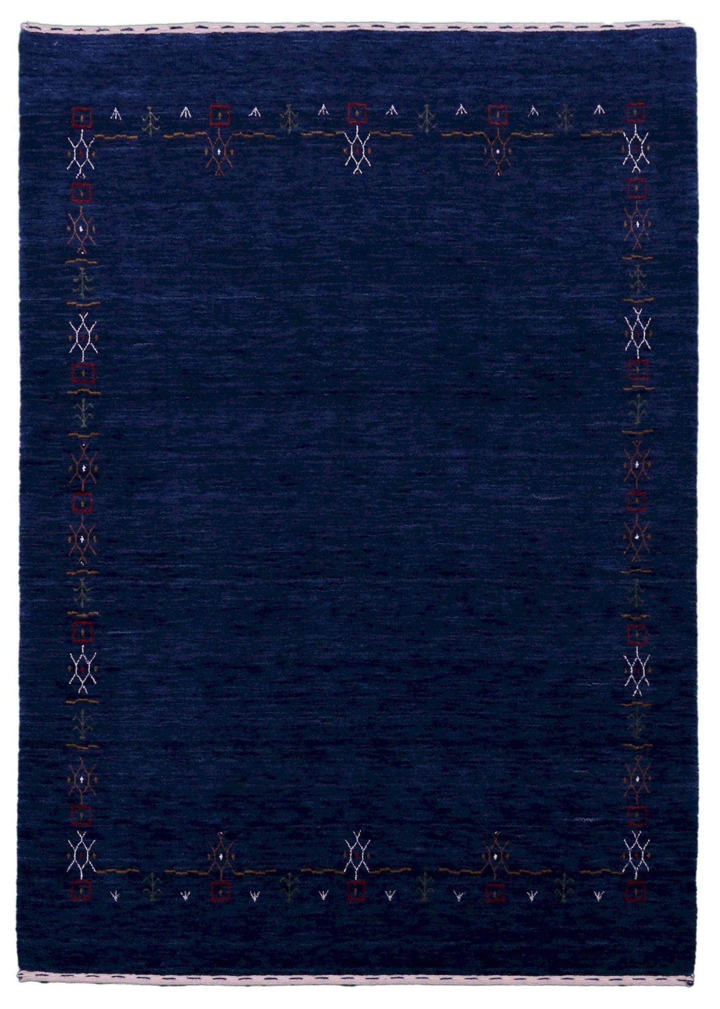 Blue Tribal Border Design Hand Loomed Wool Area Rug