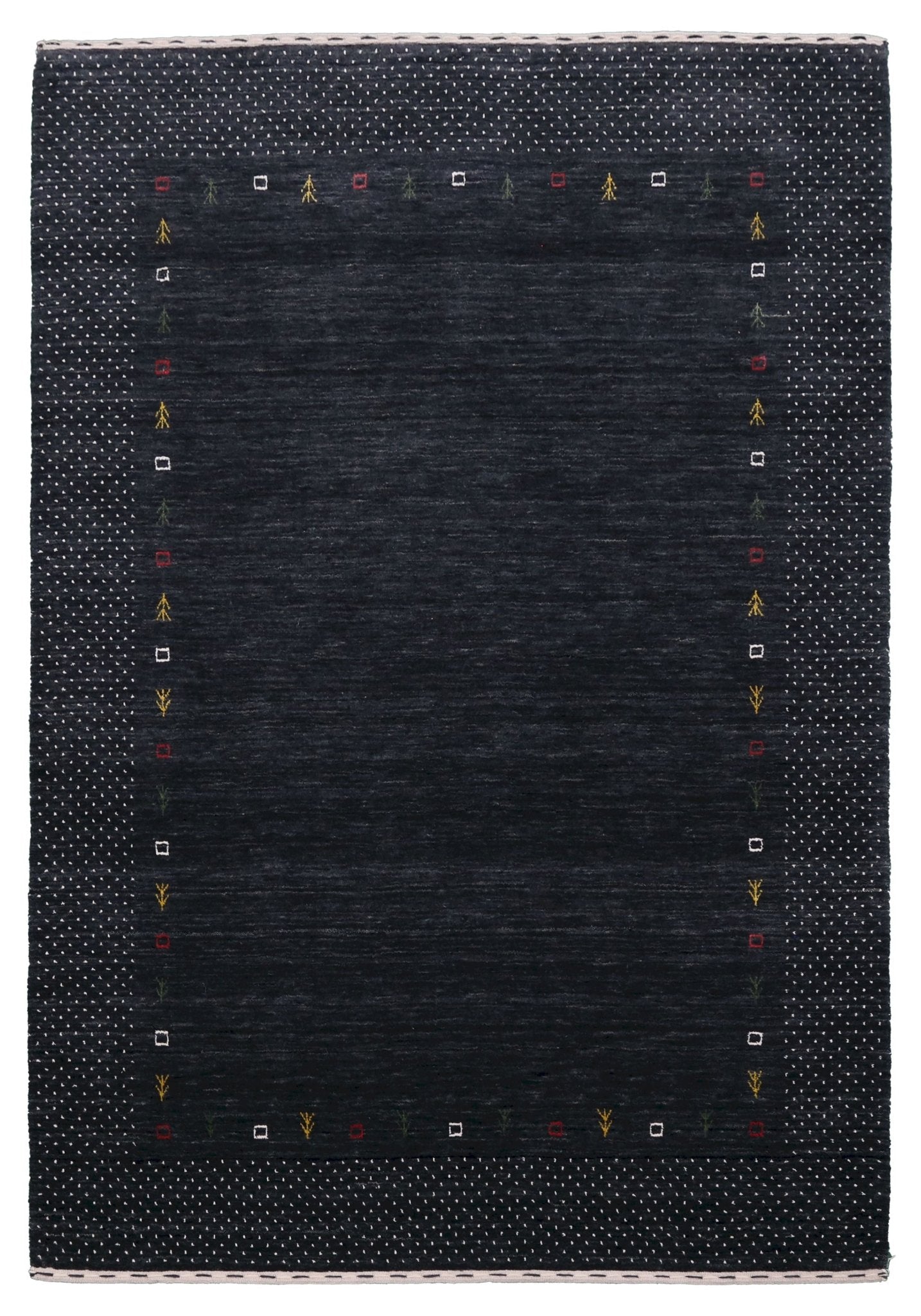 Contemporary Charcoal Gabbeh Border Hand Loomed Wool Area Rug