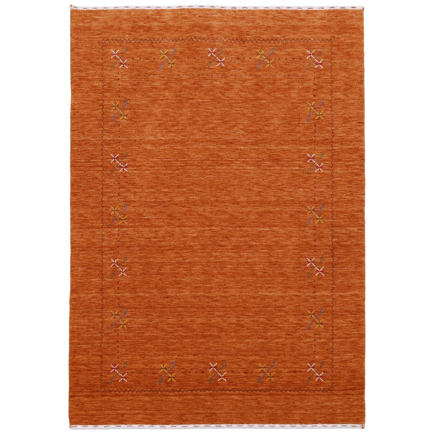 Gabbeh Border Orange Rust Hand Loomed Wool Area Rug