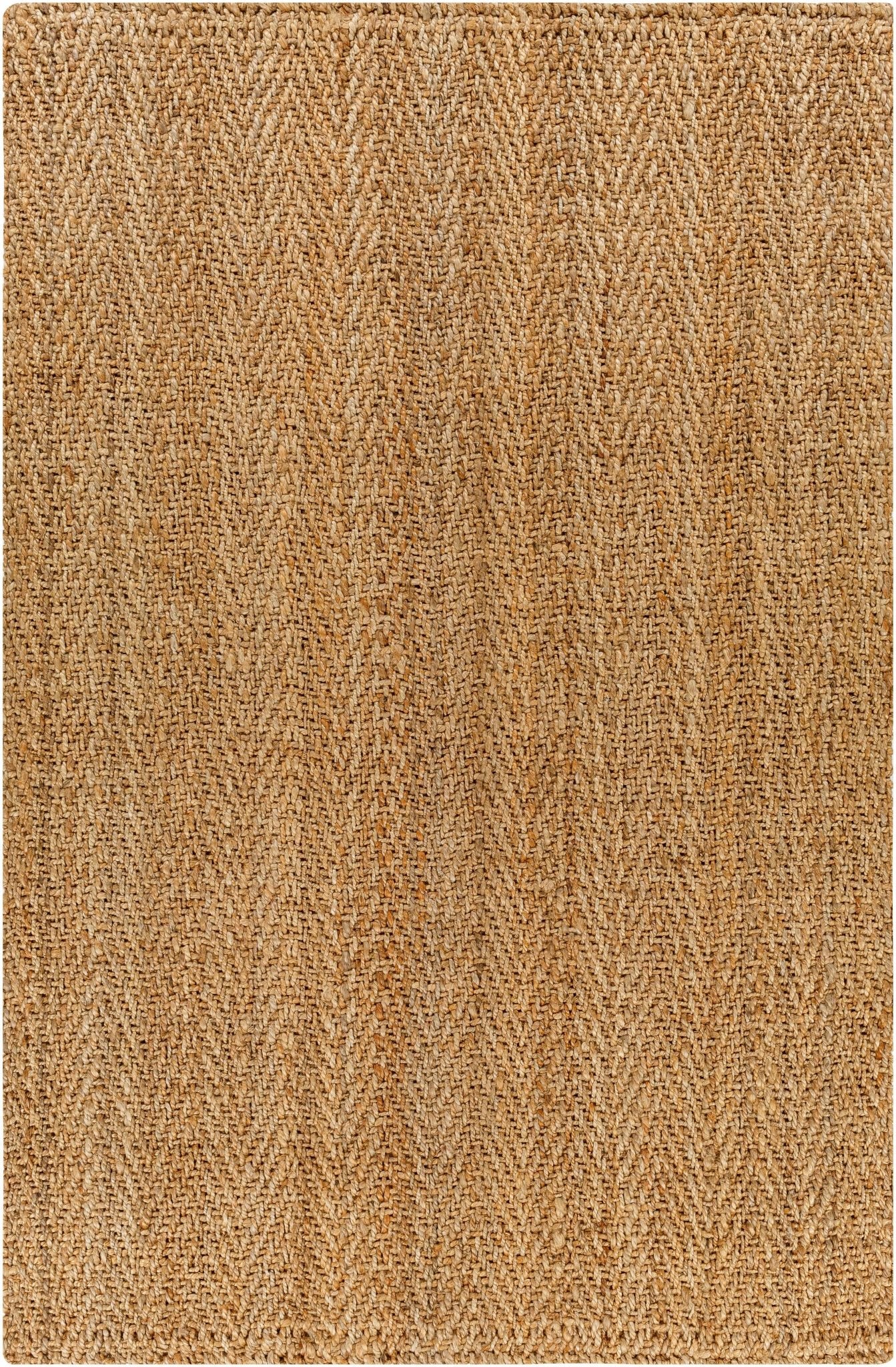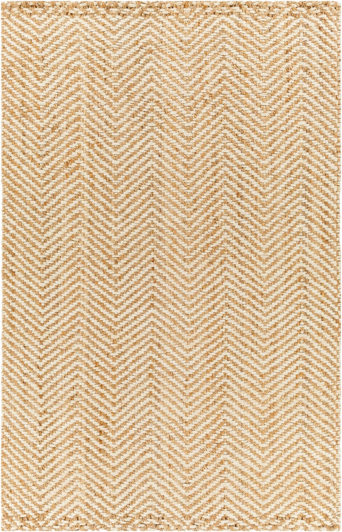 Hand Woven Ivory and Gold Textured Chevron Design Multi Size Jute Area Rug