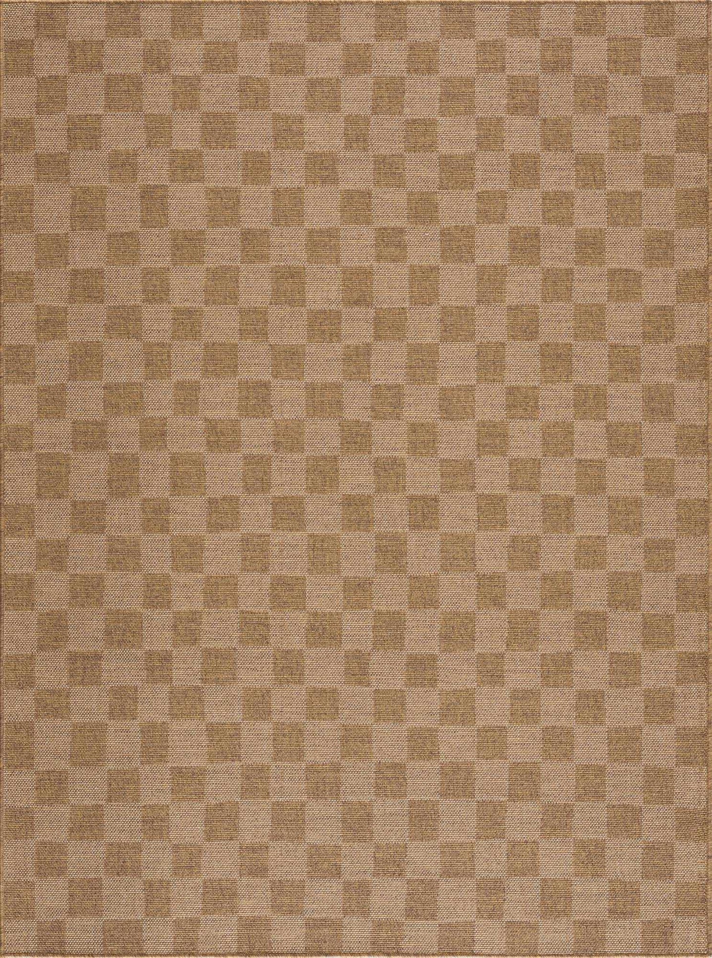 Modern Geometrical Checkered Brown and Ivory Outdoor safe Area Rug