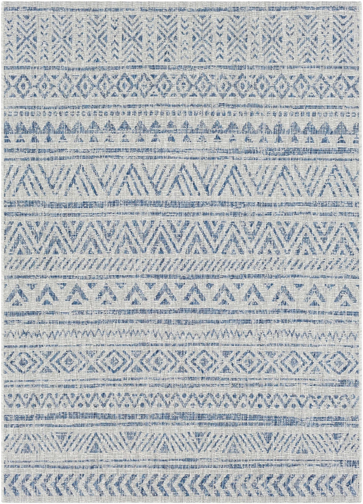 Traditional Blue and Ivory Tribal Design Outdoor Area Rug