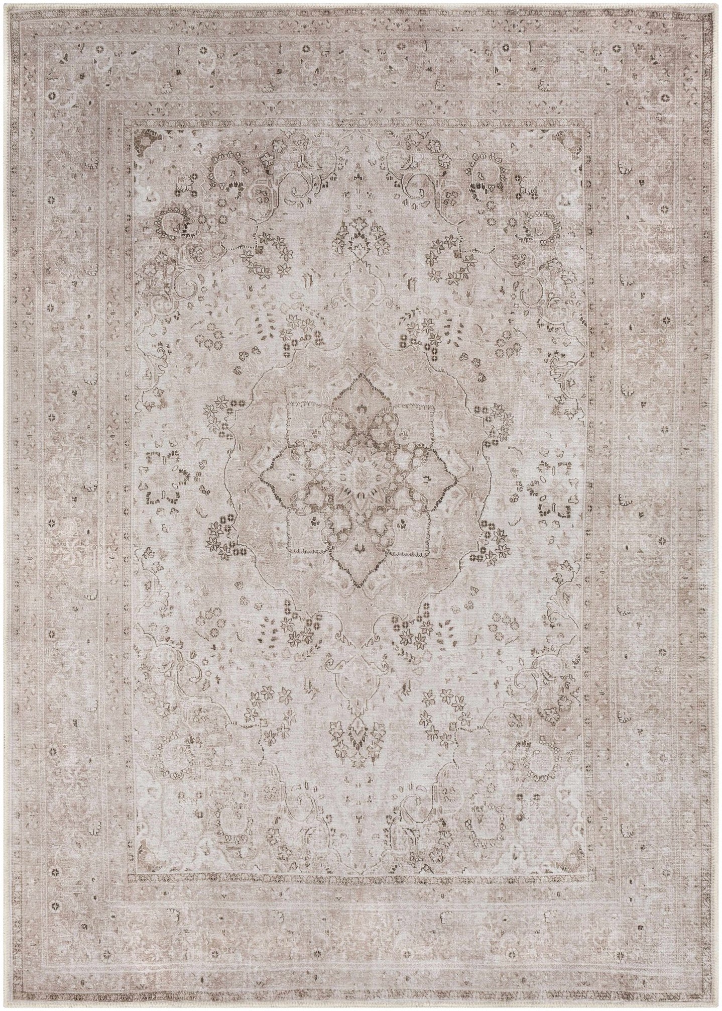 Antique look Transitional Charcoal, Ivory and Brown Medallion Machine Washable Rug