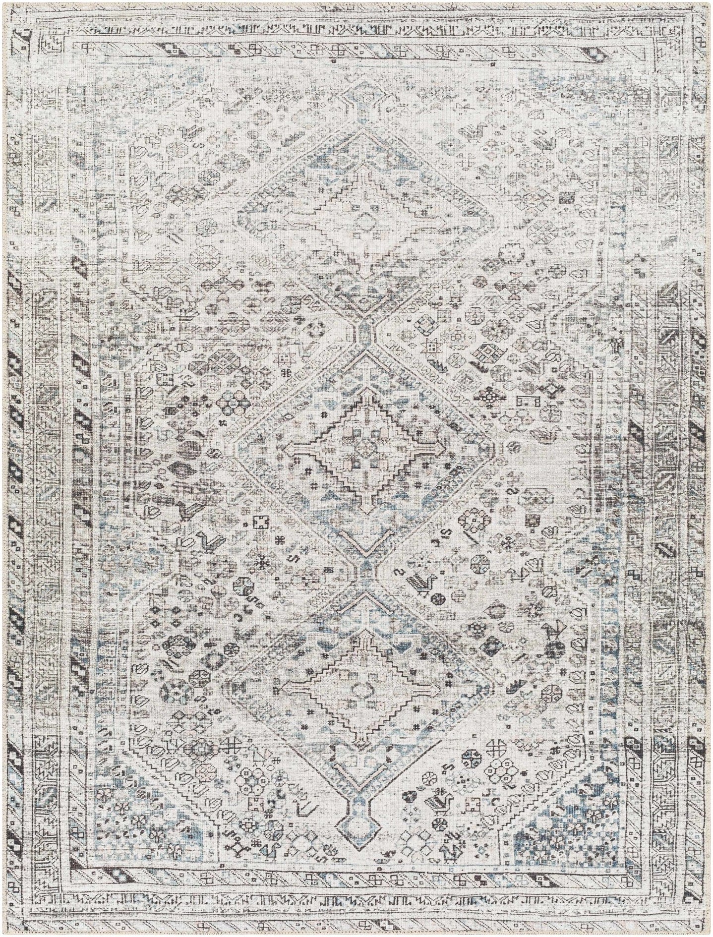 Silver, Gray and Charcoal Machine Woven Traditional Washable Turkish Rug