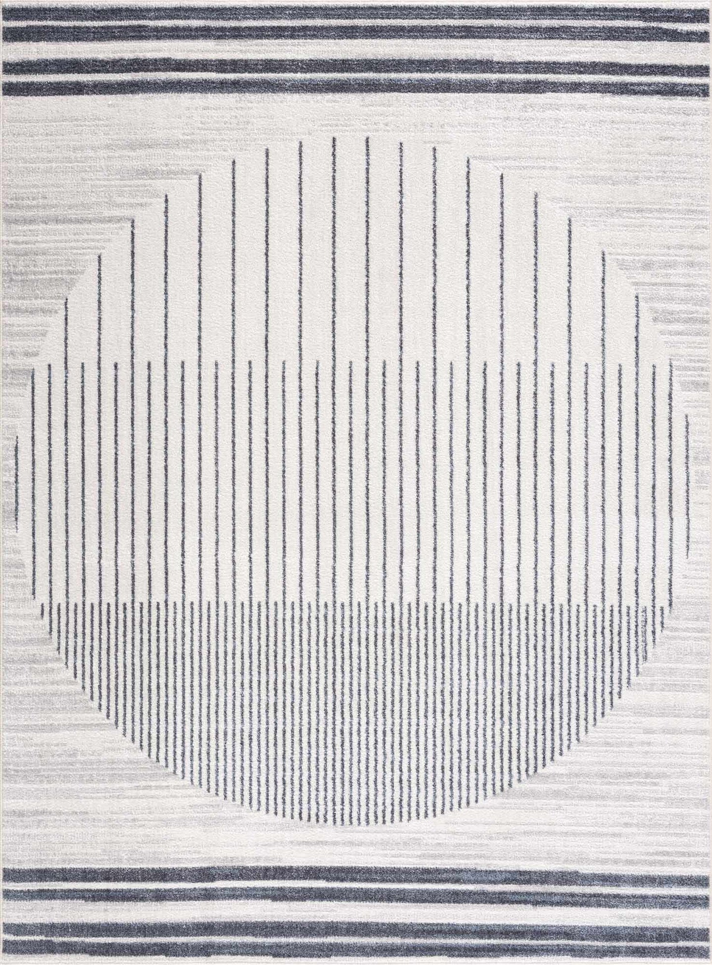 Silver, Ivory and Charcoal Geometrical Stripes Pattern washable Design Rug
