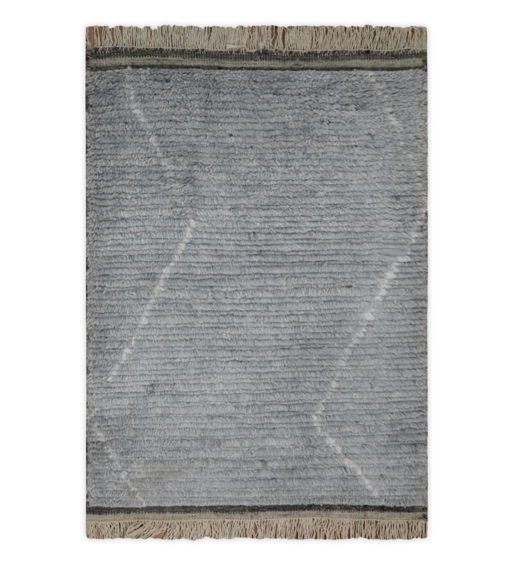 Custom Made Modern Abstract Silver And Blue Hand Tufted Wool Rug
