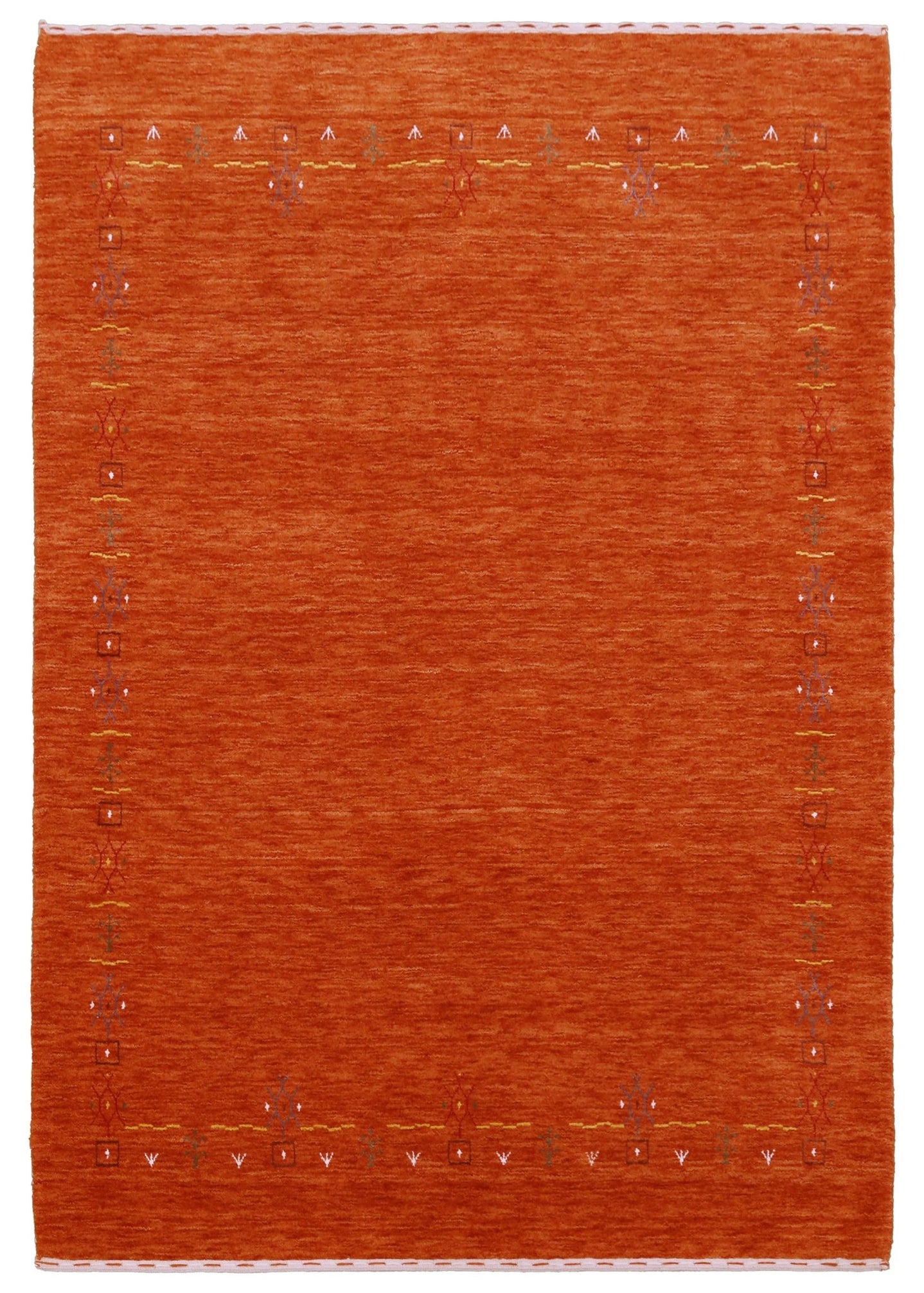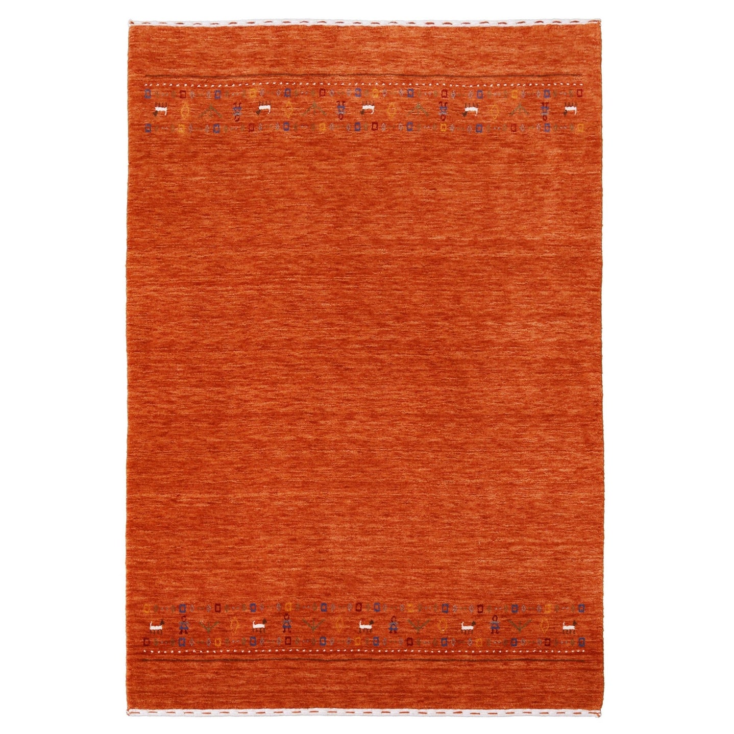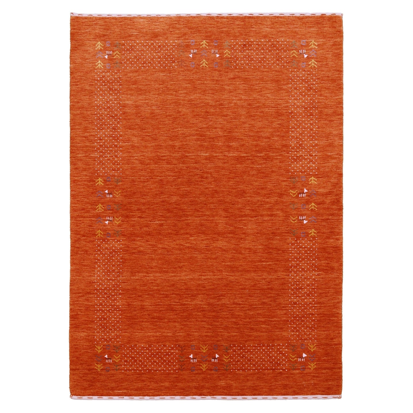 Orange Solid ground with Border Pattern Loomed Wool Area Rug