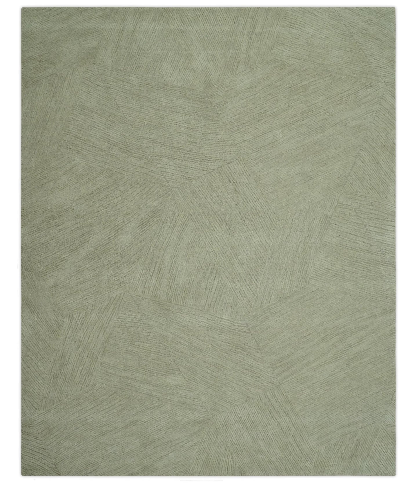 Modern Contemporarry Olive and Ivory Hand Tufted Custom Made wool rug