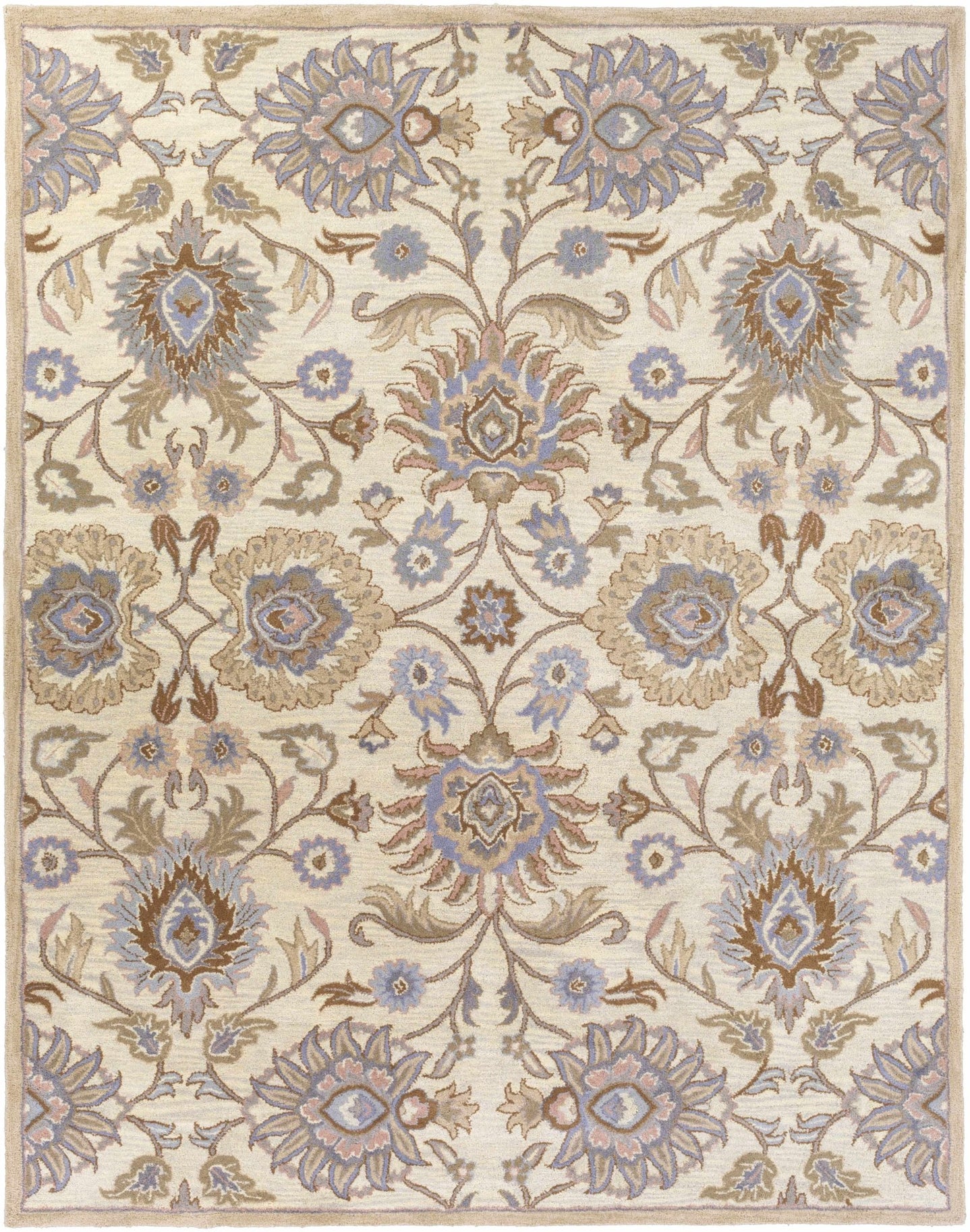 Floral Beige, Tan, Violet and Brown Traditional Hand Tufted wool area Rug