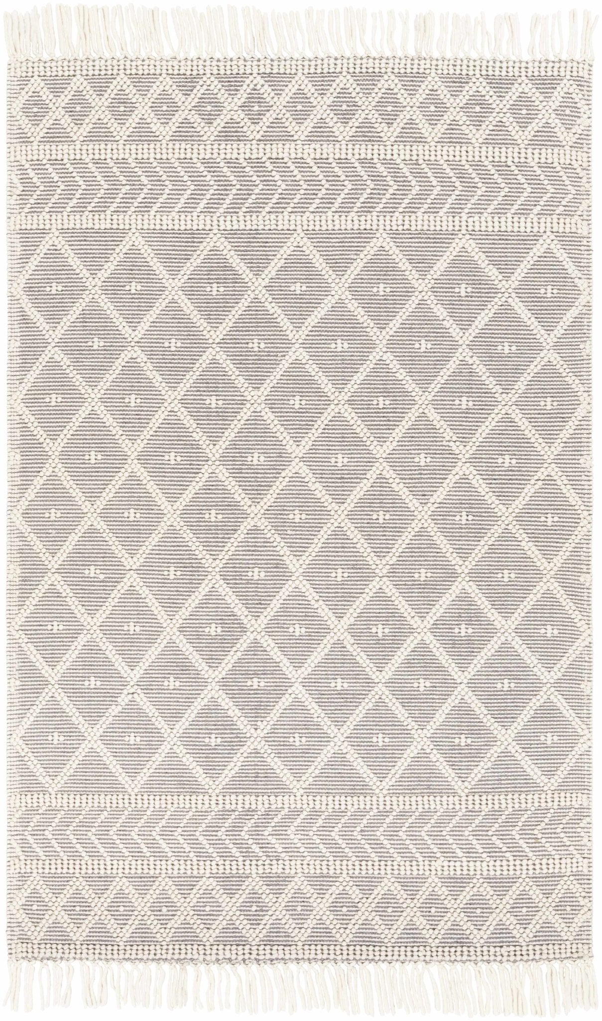 Hand Woven Ivory and Gray Modern Geometrical Tassel design Wool Area Rug