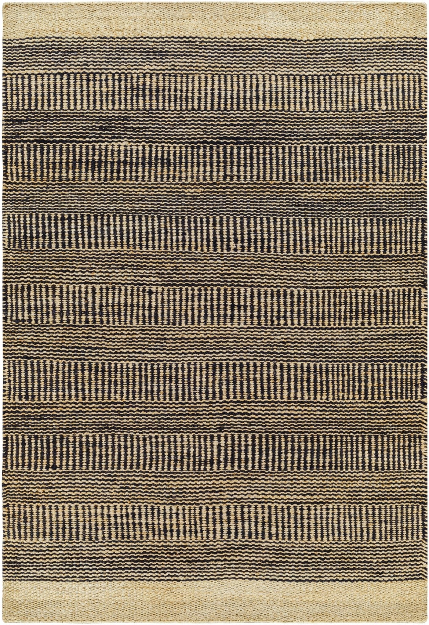 Hand Woven Tan and Charcoal Stripes Design contemporary jute area Rug