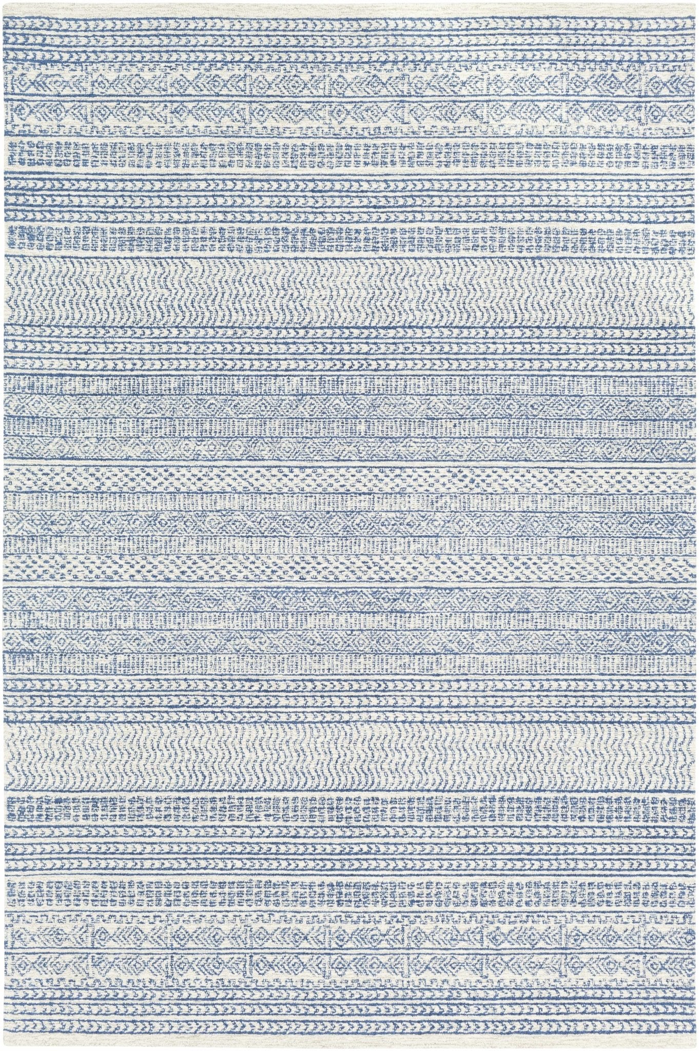 Tribal Design Blue and Ivory Hand Tufted Stripes design multi Size wool area Rug