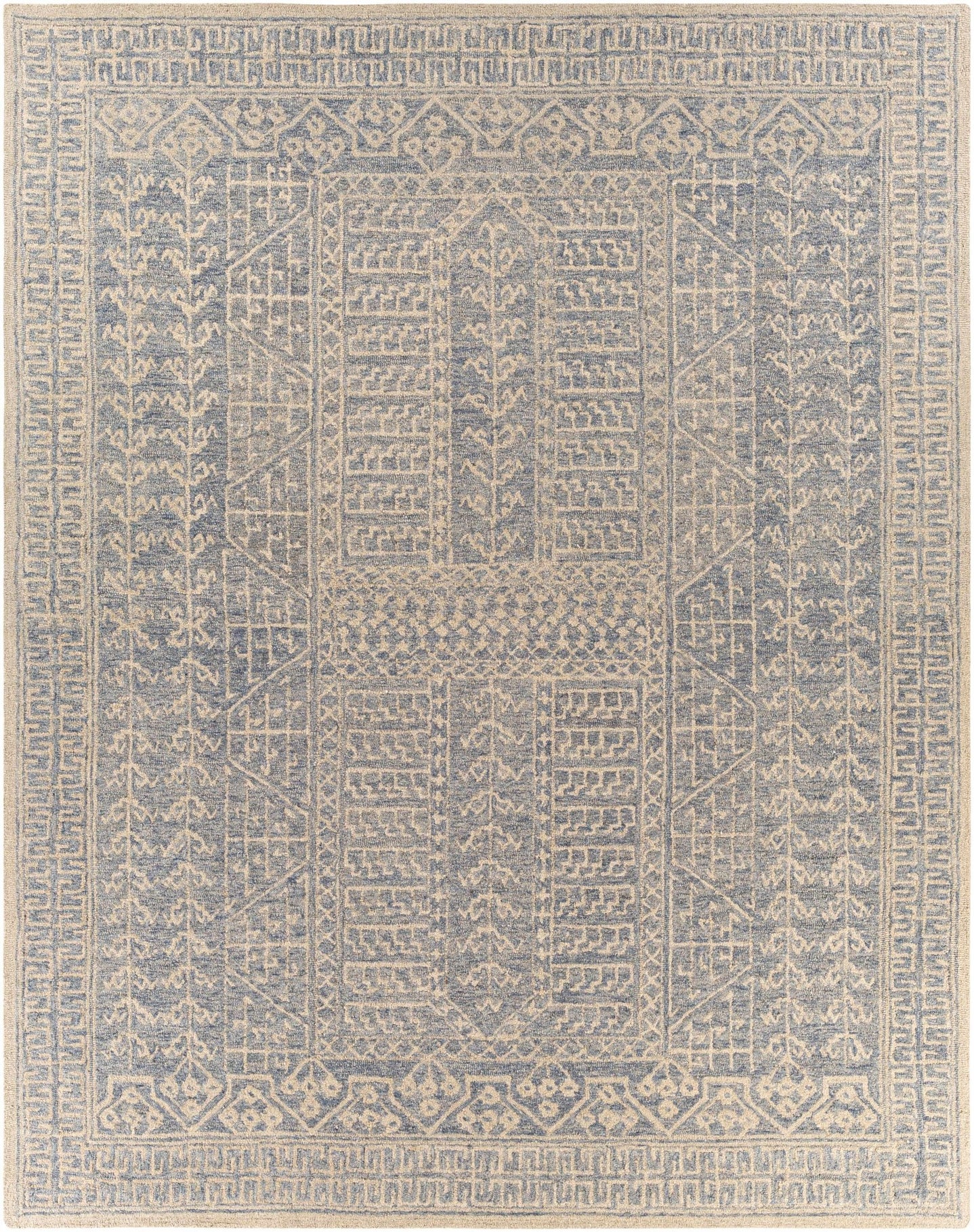Antique Look Intricate Designs Beige and Blue Traditional Hand Tufted Wool Area Rug