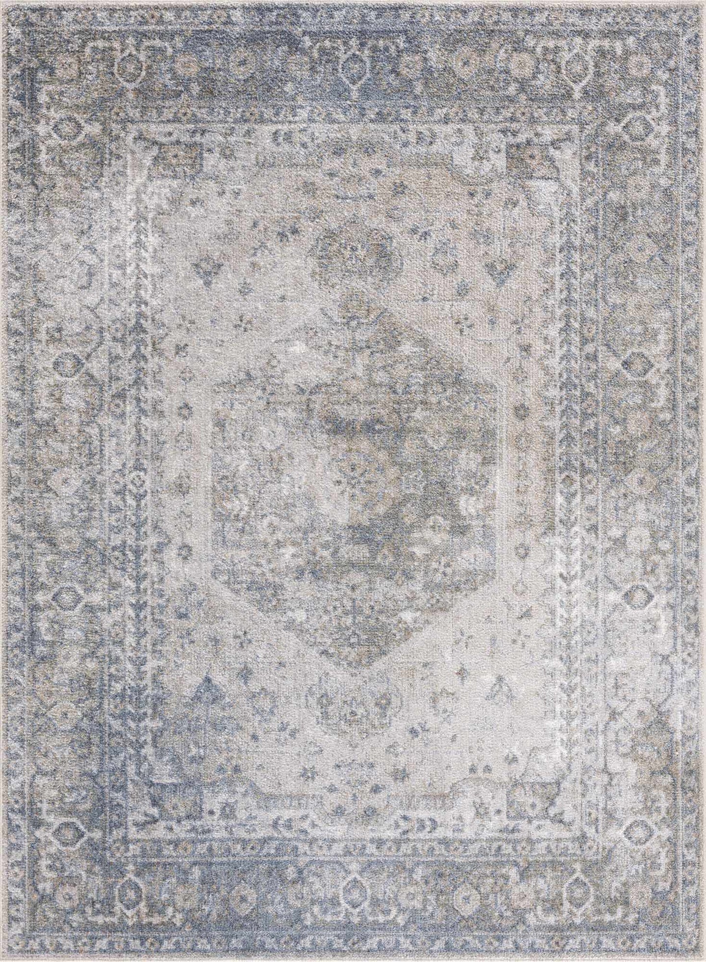 Distressed Finished Beige, Brown and Blue Traditional Washable Area Rug