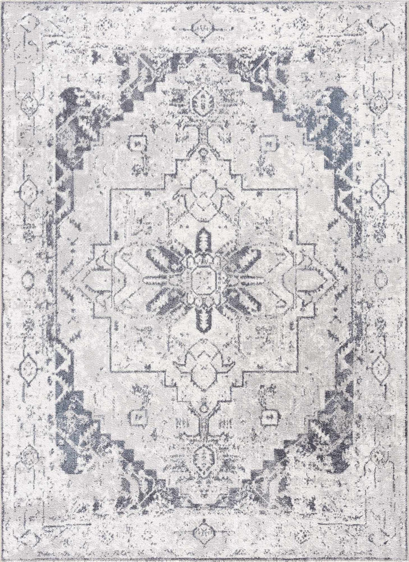 Antique look Ivory And Charcoal Medallion Washable Area Rug