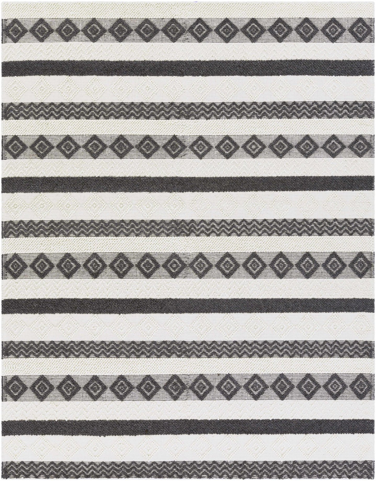 Hand Woven Tribal look Ivory and Charcoal Geometrical Tasseled wool Area Rug