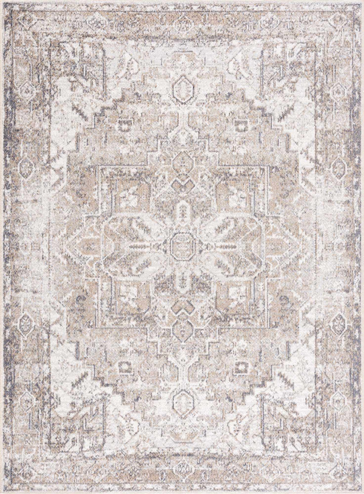 Beige and Charcoal Traditional Geometrical Design Machine Woven Moroccan Multi Size Rug