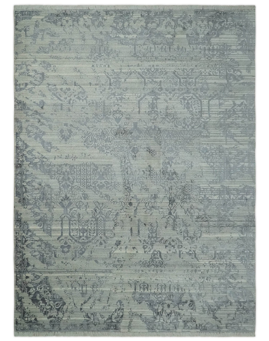 Ivory, Gray and Blue 5x8 and 8x11 Traditional Hand Tufted Ikat Design Wool Area Rug - The Rug Decor