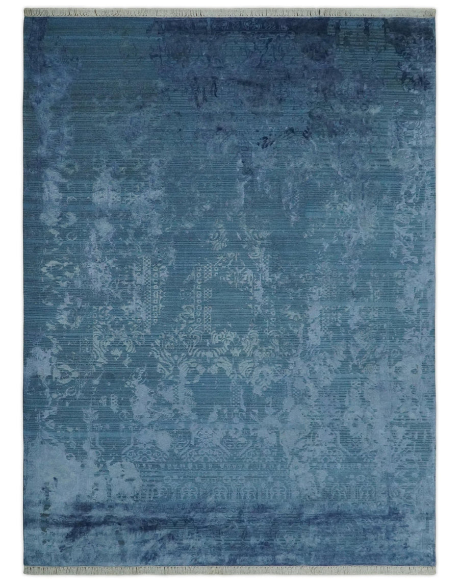 Contemporary Hand Tufted Silver and Blue Modern Wool Area Rug