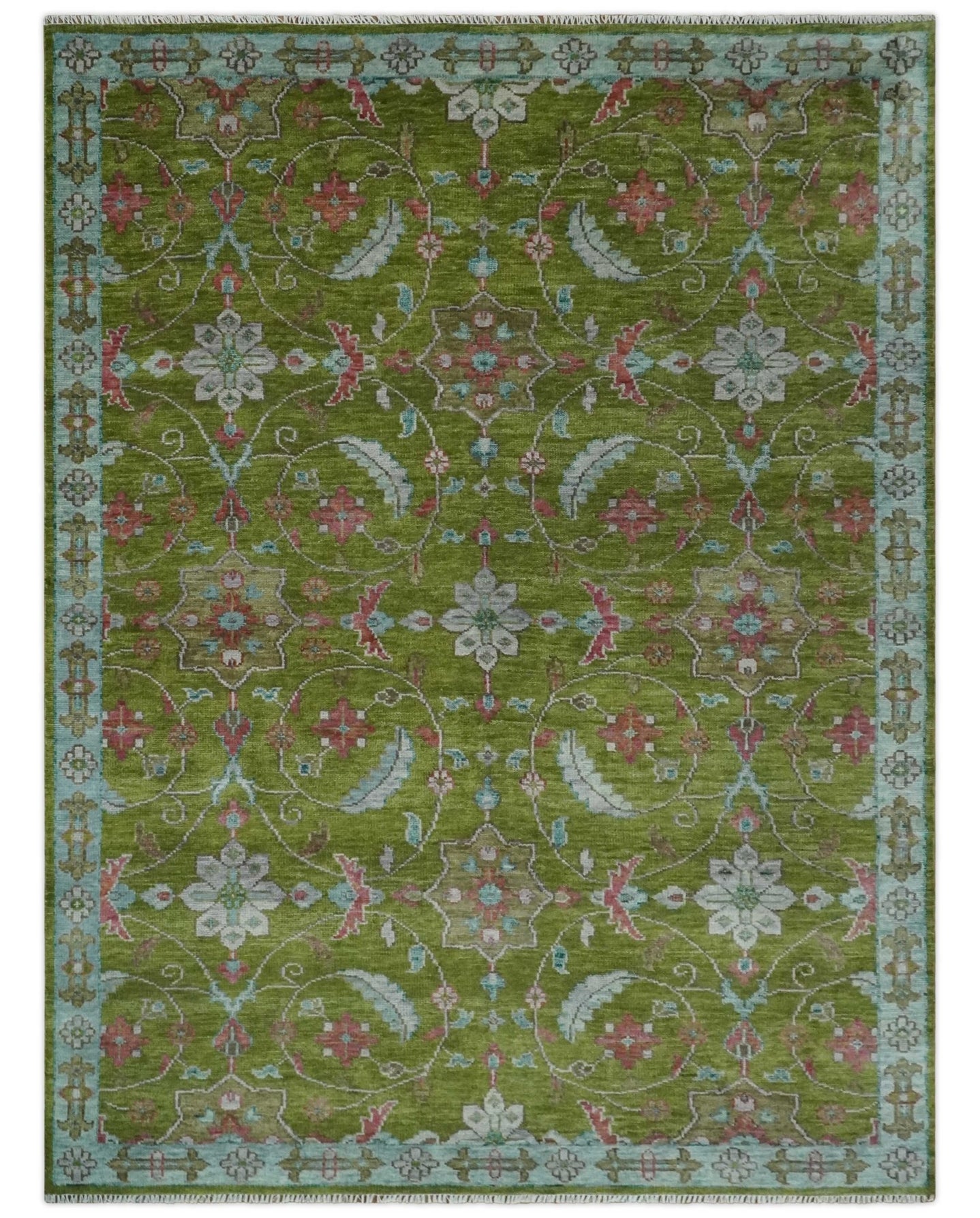 Ready to Ship Hand Knotted Blue and Rust Modern Oushak Area Rug