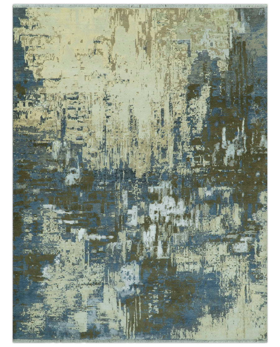 Ready to Ship Green Contemporary Design Hand Loomed Wool Area Rug