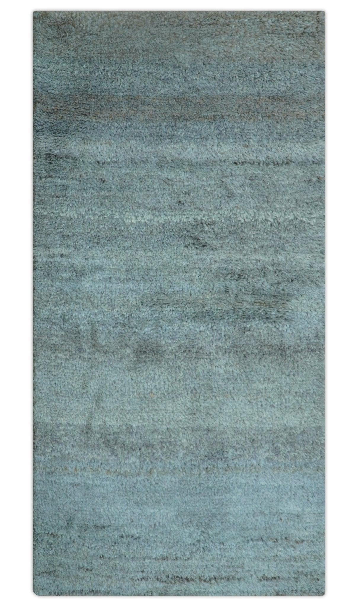 Custom Made Contemporary Solid Blueish Silver Hand knotted wool Area Rug