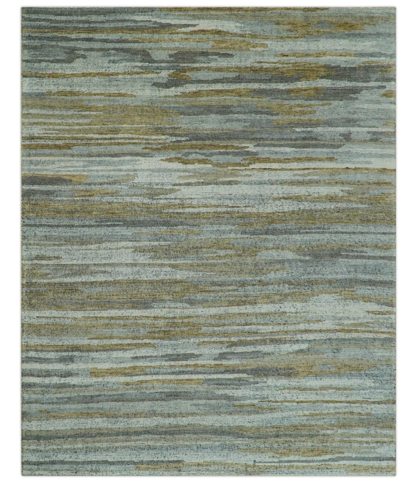 Custom Made Transitional Silver, Gold and Gray Hand Knotted Wool Rug