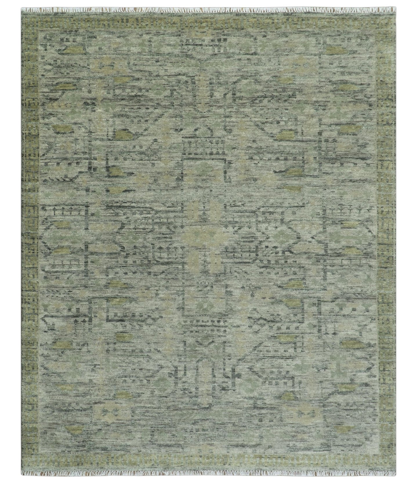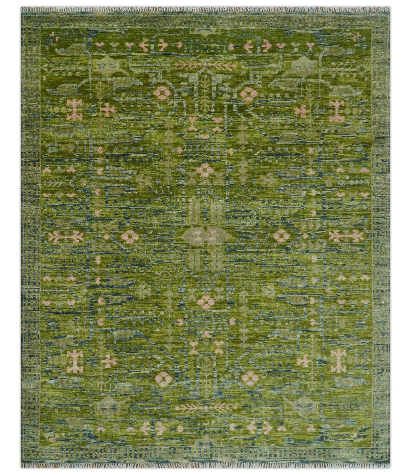 Solid Green Hand knotted Contemporary Custom Made wool Area Rug