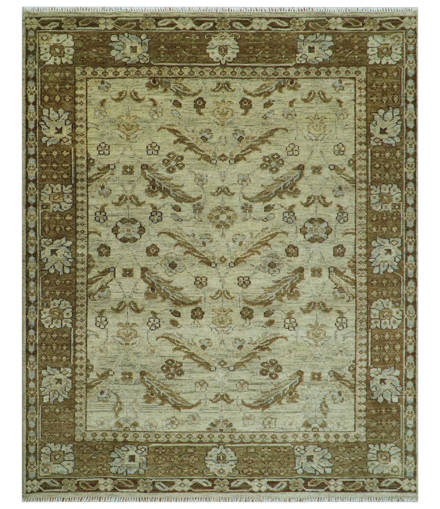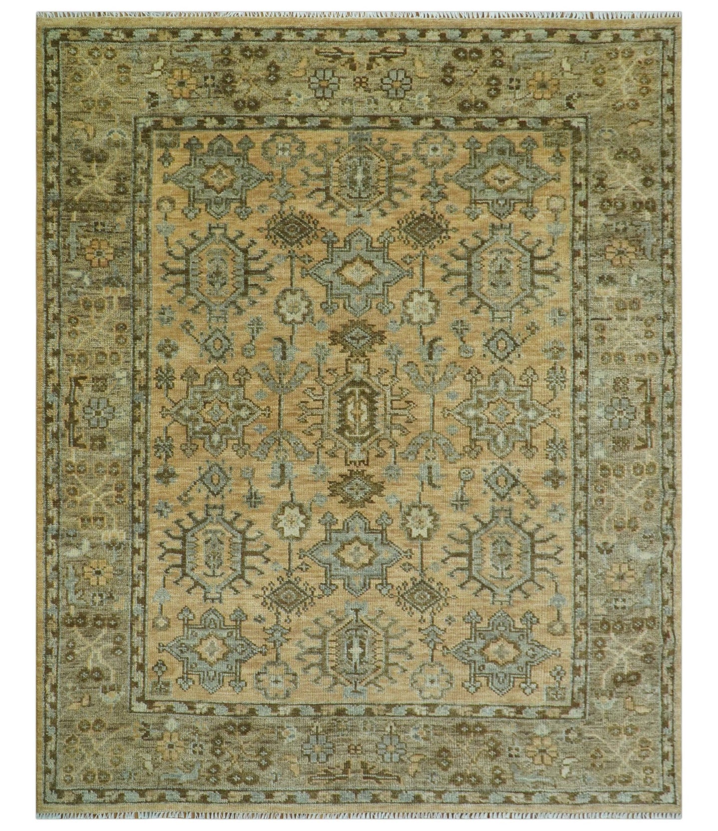 Custom Made Blue And Olive Traditional Medallion Hand Knotted Wool Rug