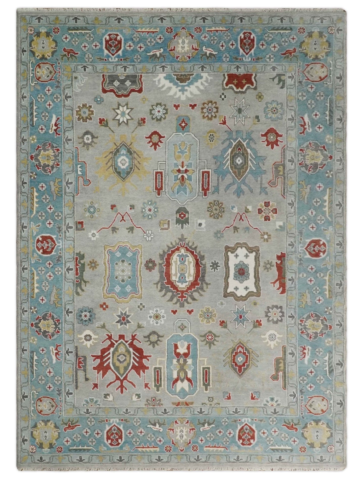 Custom Made Hand Knotted Green and Ivory Traditional Oushak Wool Rug