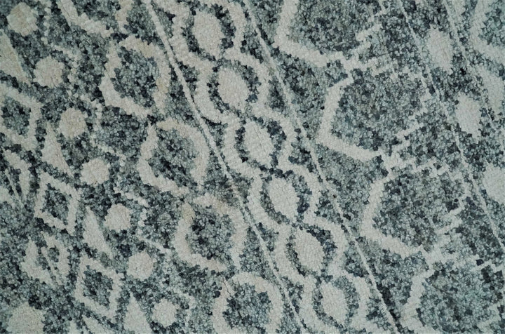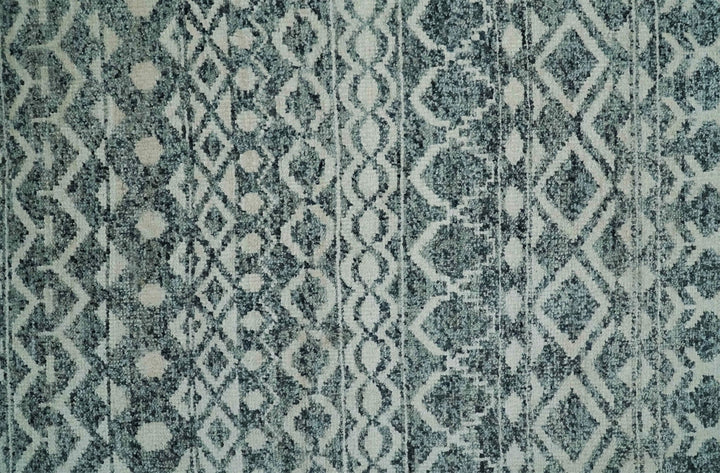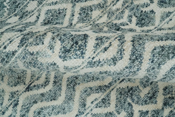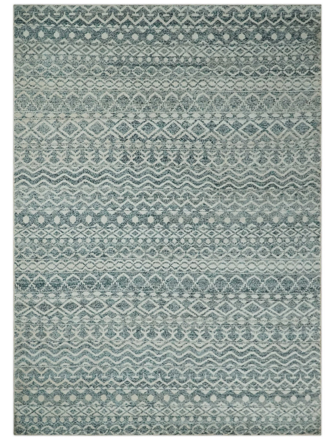 9x13 Hand Knotted Ivory and Teal Blue Modern Contemporary Southwestern Tribal Trellis Recycled Silk Area Rug | OP51