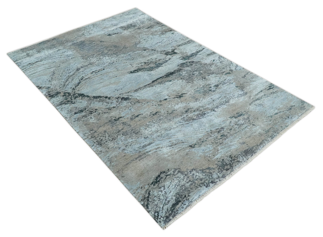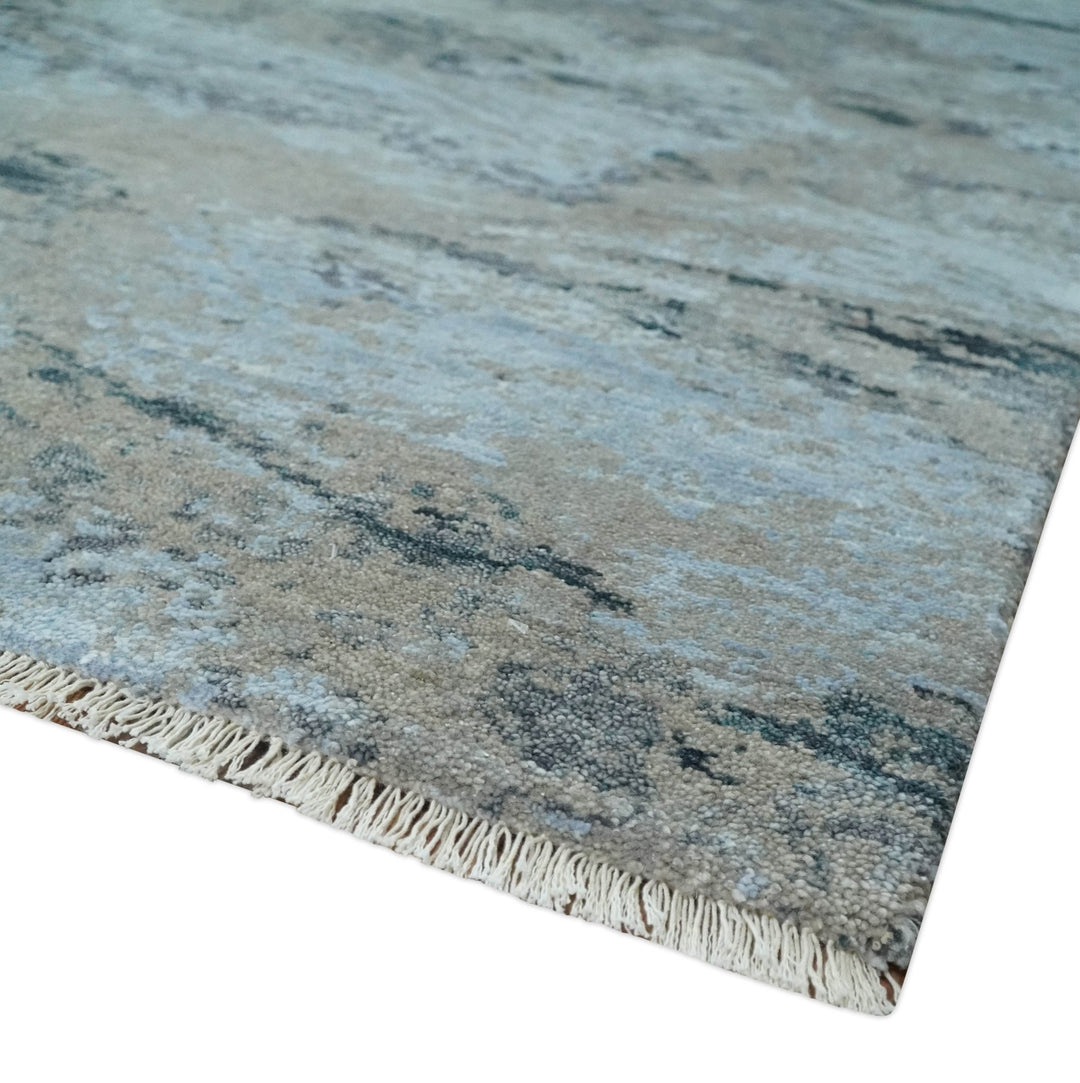 This 5x8 and 6x9 area rug is perfect for adding a modern style to any room. It is made from high-quality wool and features an abstract design full of aqua, silver, charcoal and brown tones. It is carefully handmade to ensure both quality and durability.