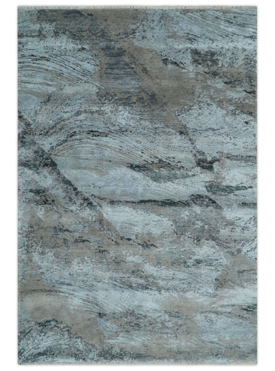 5x8 and 6x9 Aqua, Silver, Charcoal and Brown Modern Abstract Handmade Wool Area Rug