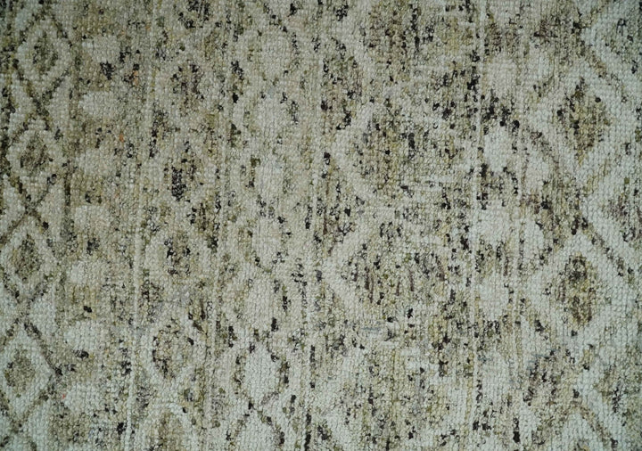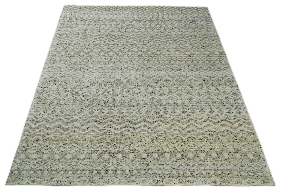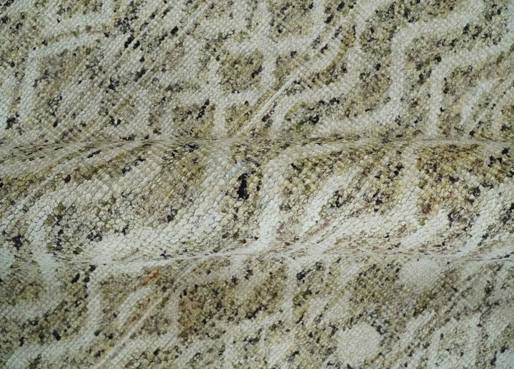 9x12 and 10x14 Hand Knotted Ivory, Beige and Brown Modern Contemporary Southwestern Tribal Trellis Recycled Silk Area Rug | OP28