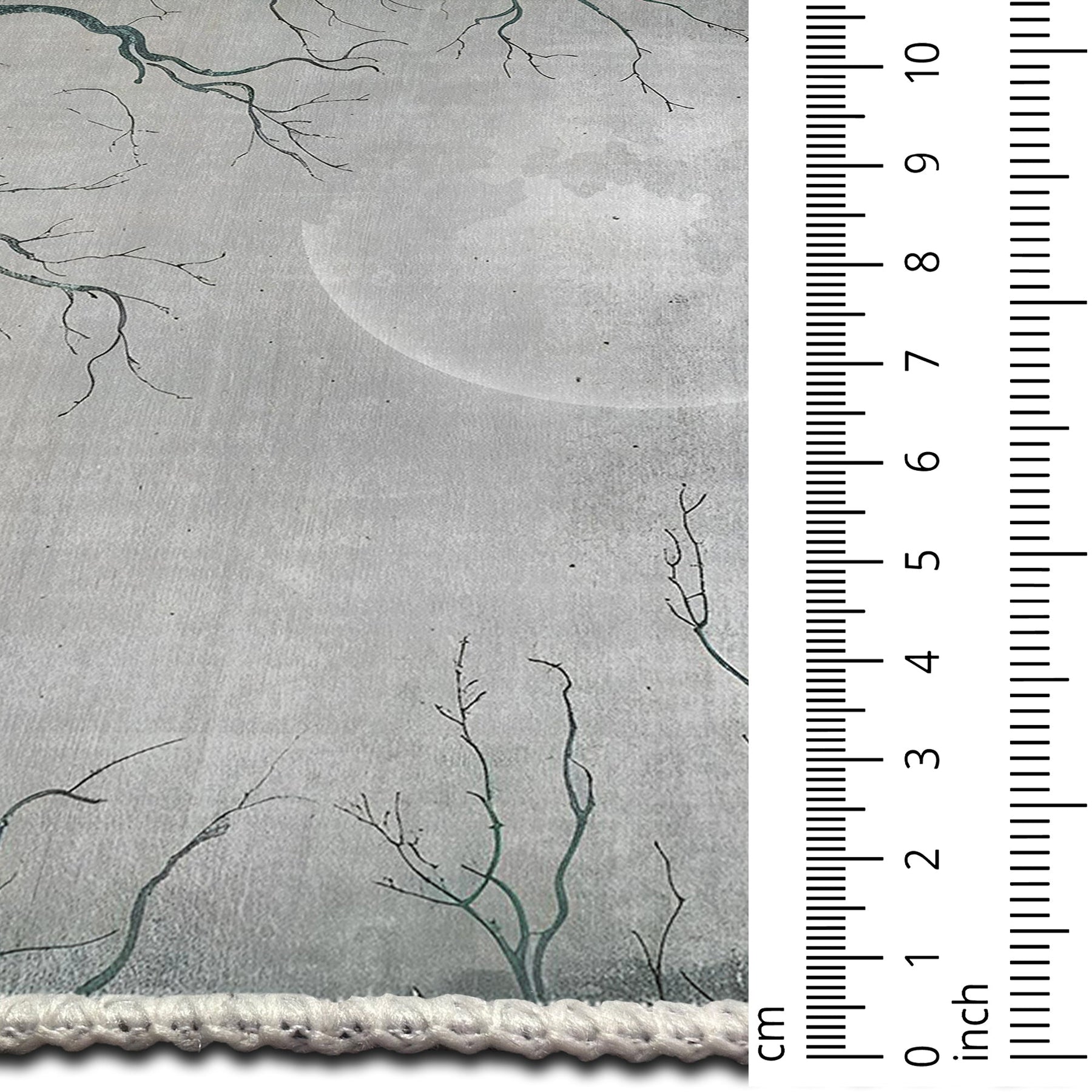Avon Halloween Moon and Night Design Gray Machine Washable Cotton Rug