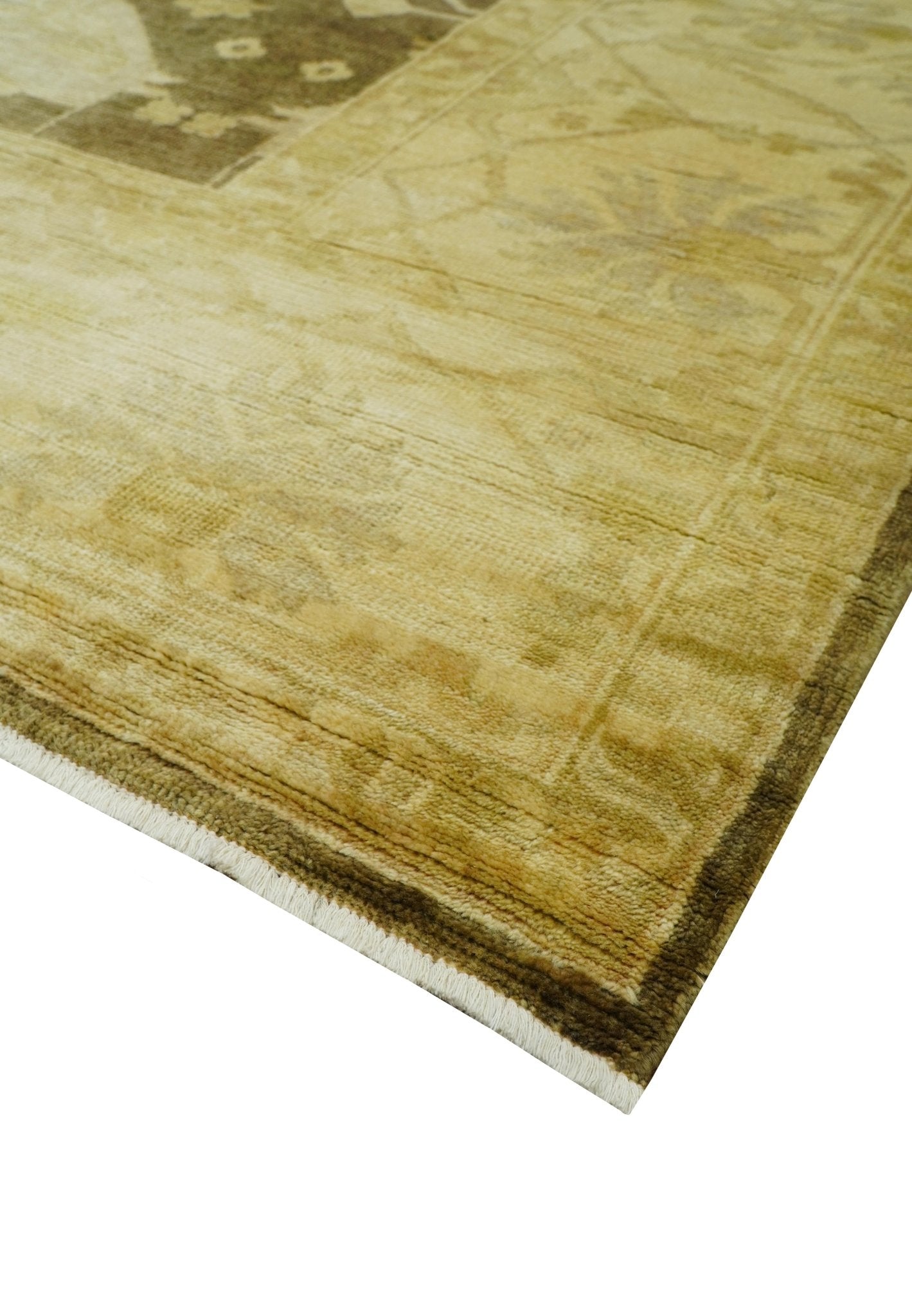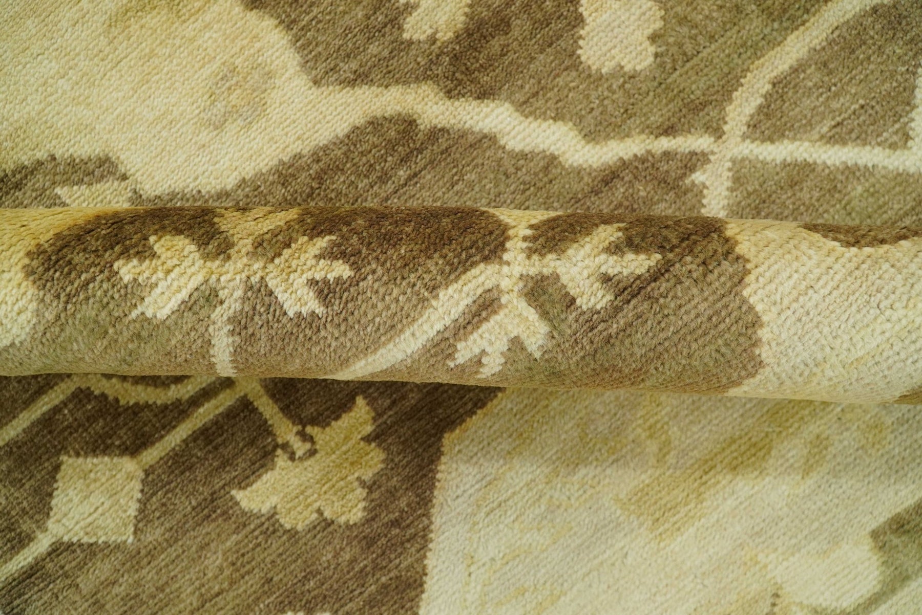 Beige And Brown Traditional Oushak Hand knotted Wool Area Rug