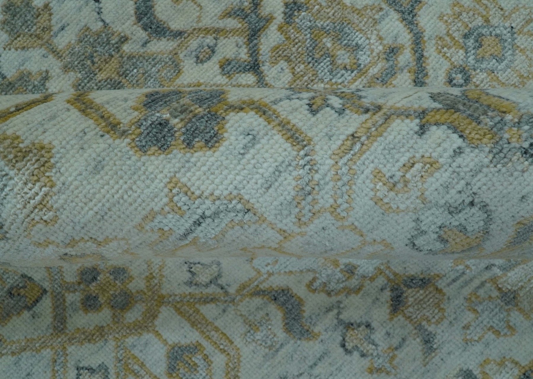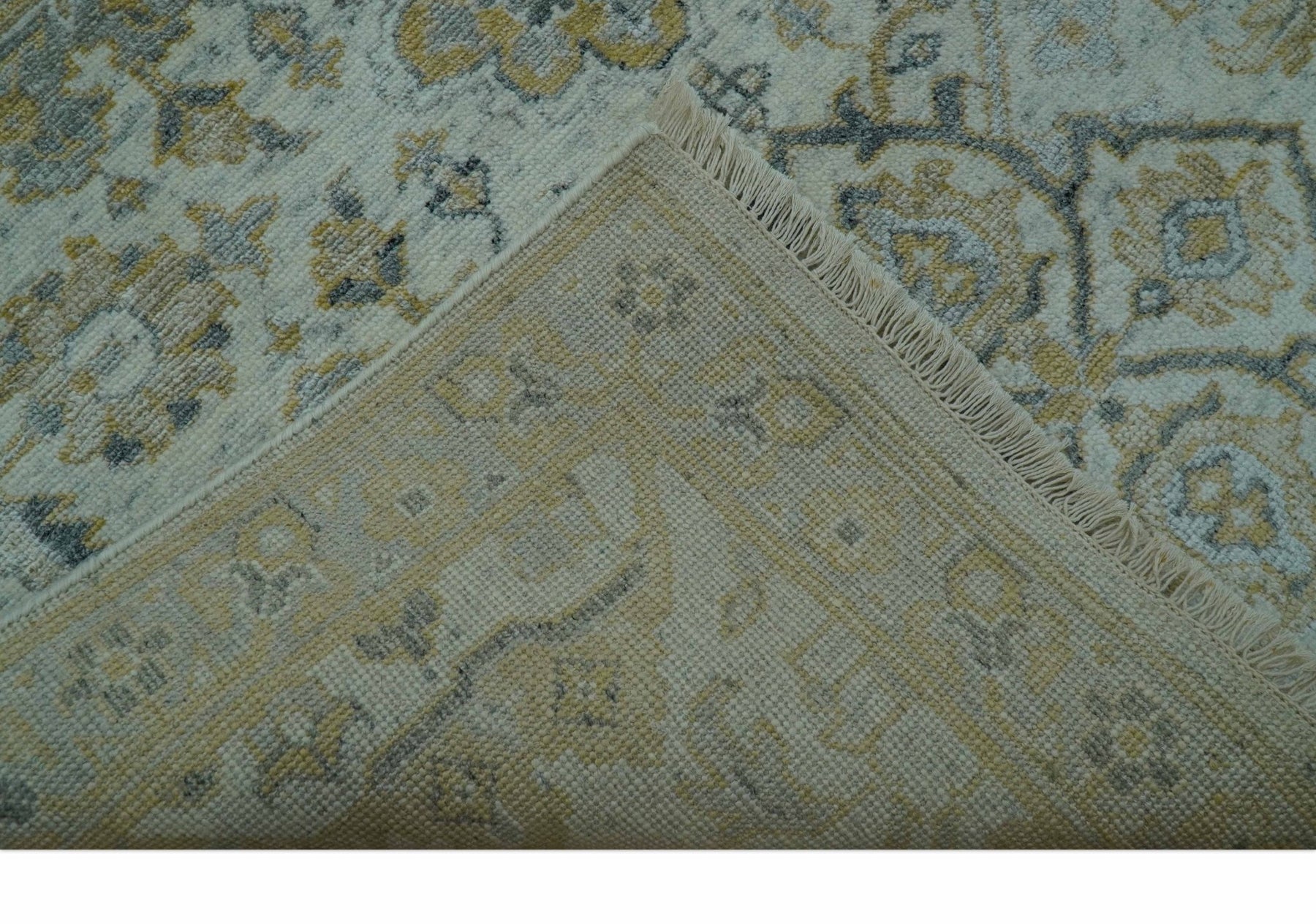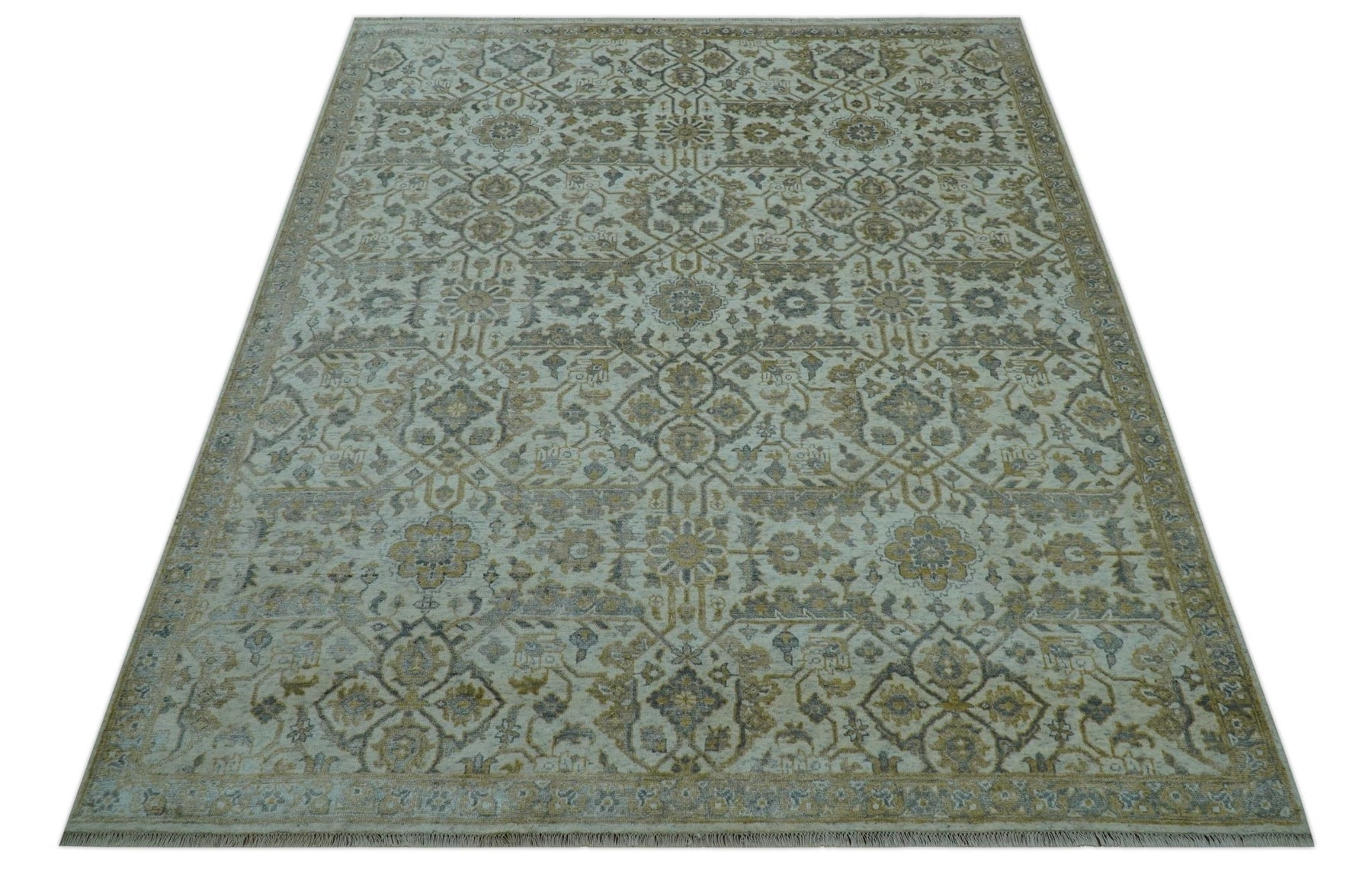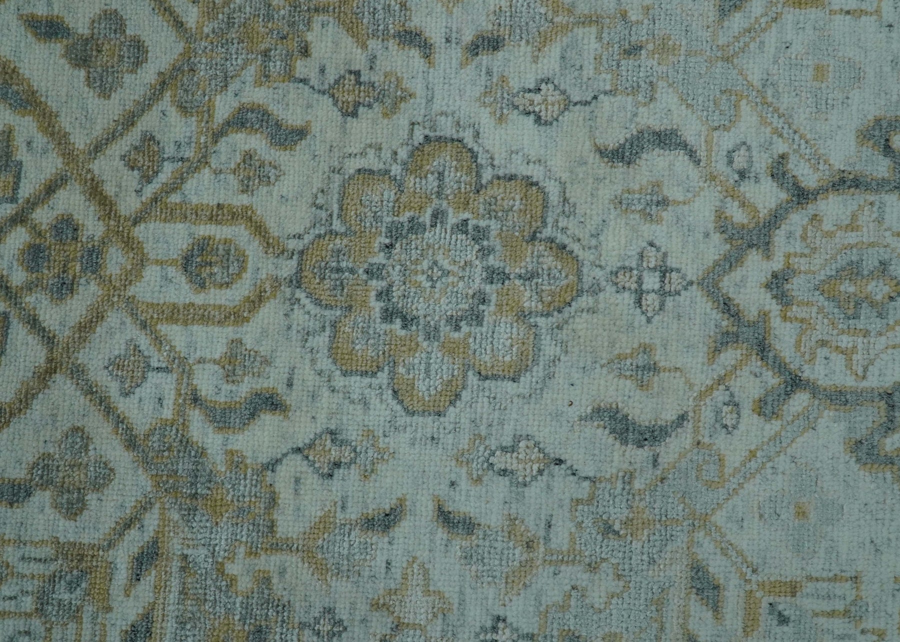 Blue And Gold Fine Hand Knotted traditional Oriental Oushak design 8x10 wool area rug