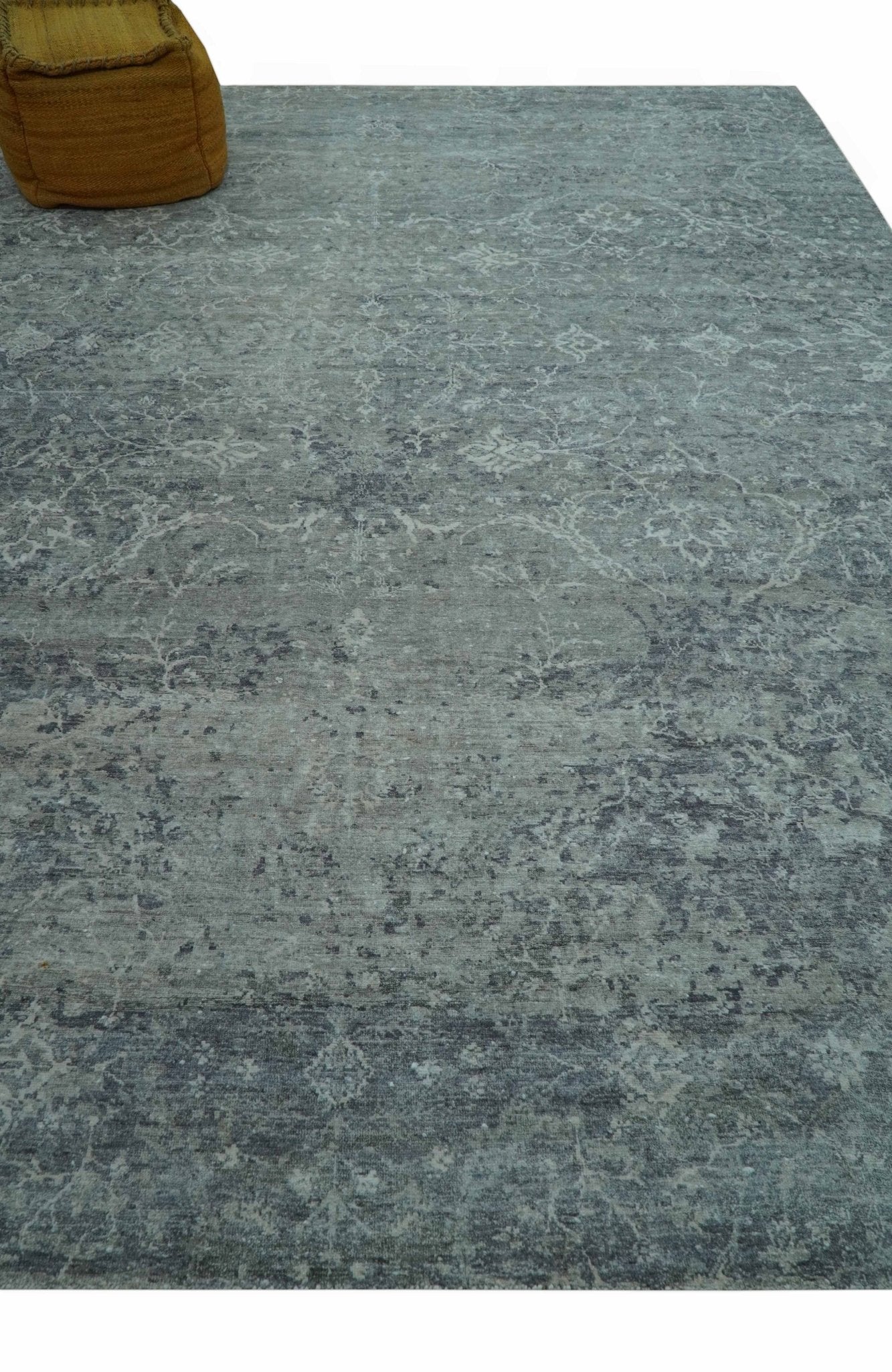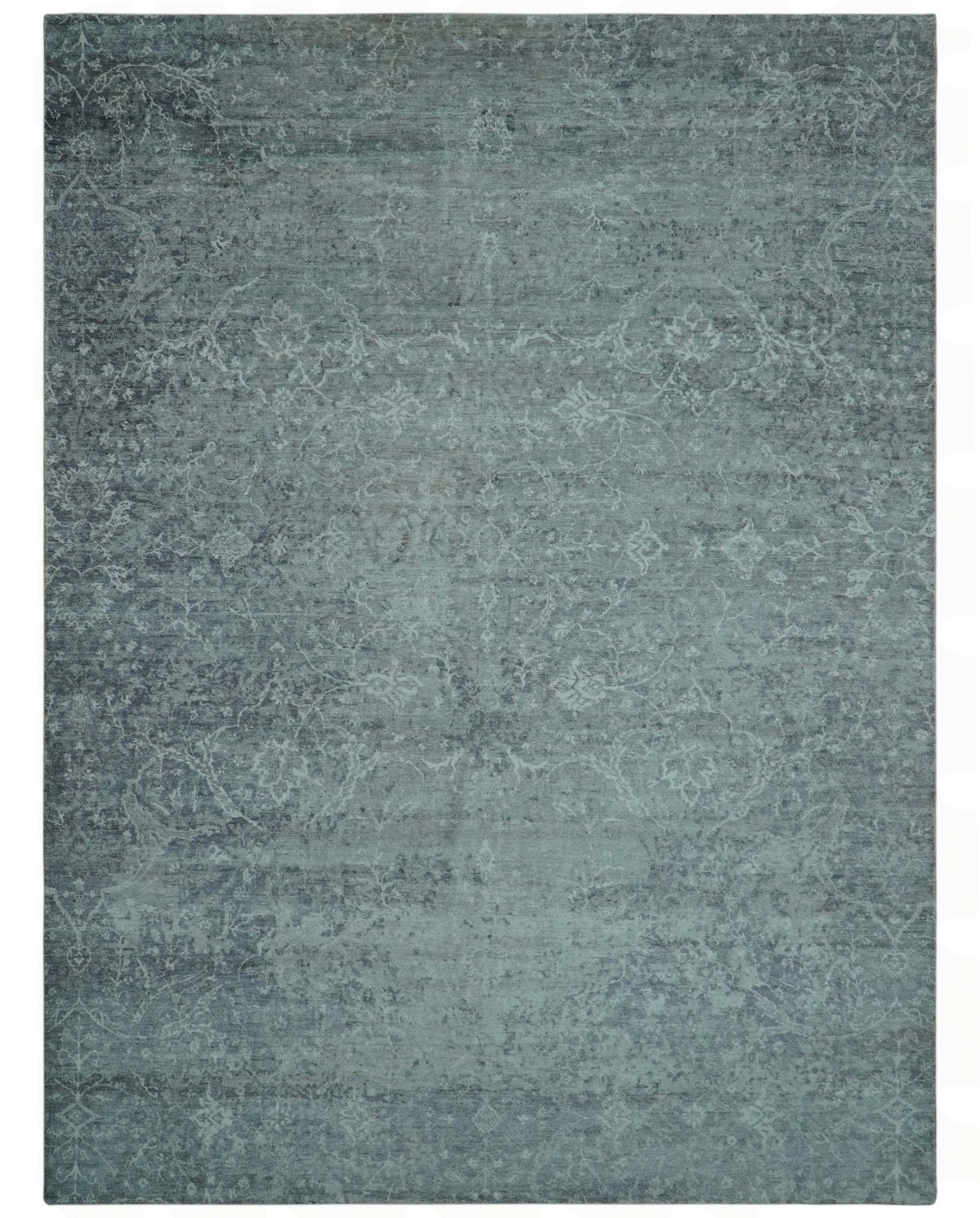 Blue And charcoal Transitional Design Hand Knotted 8.8x11.6 Wool Area Rug