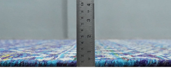 Hand Knotted Blue and Ivory 5.6x8.5 Modern Contemporary Southwestern Tribal Trellis Recycled Art Silk Area Rug