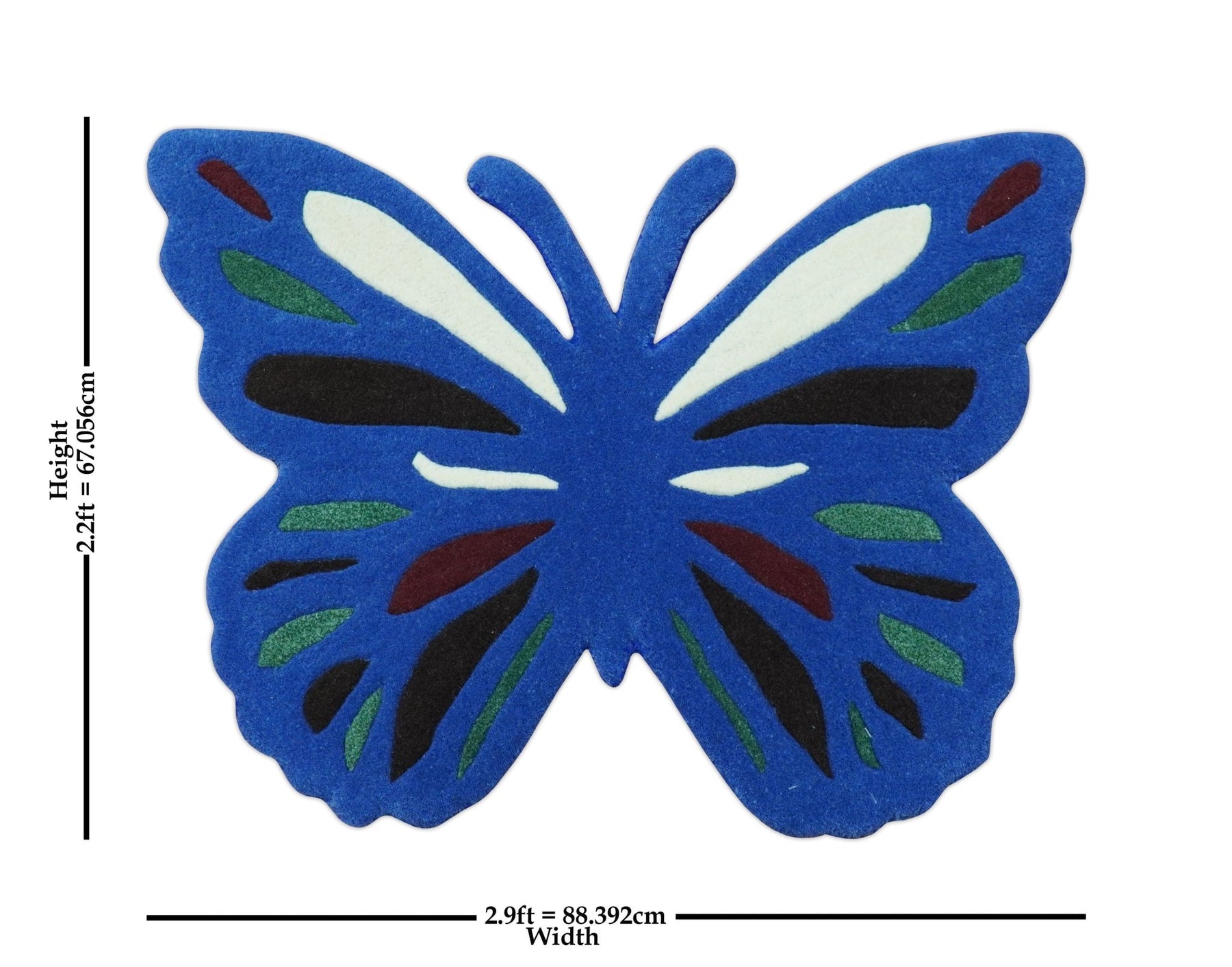 Blue Butterfly Hand Tufted 2x3 Wool Area Rug