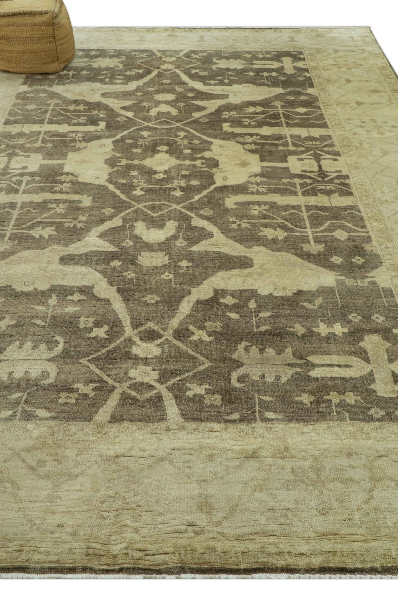 Brown And Beige Traditional Oushak Hand knotted Wool Area Rug