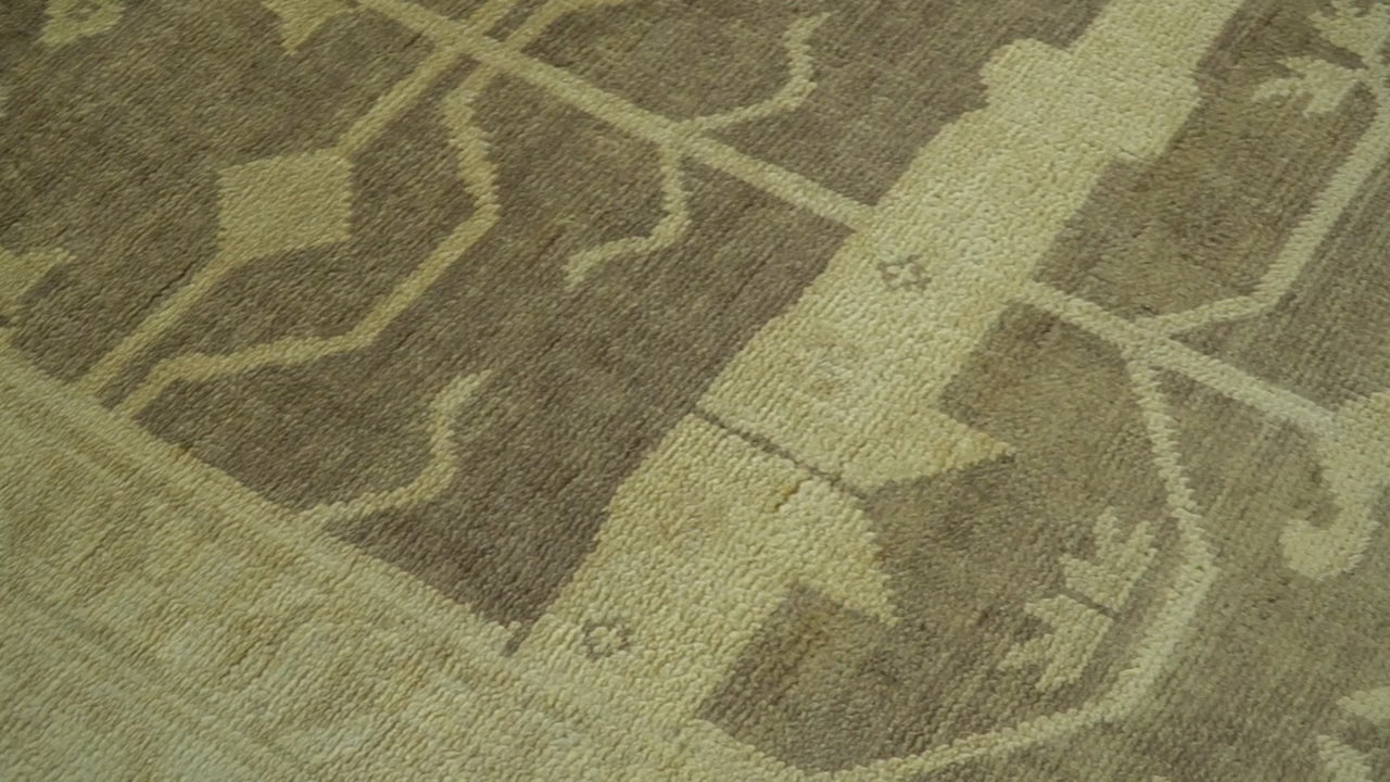 This hand-knotted Oushak wool rug showcases traditional artistry with warm brown and beige hues. Expertly crafted using time-honored techniques, it delivers enduring elegance and durability for discerning collectors.