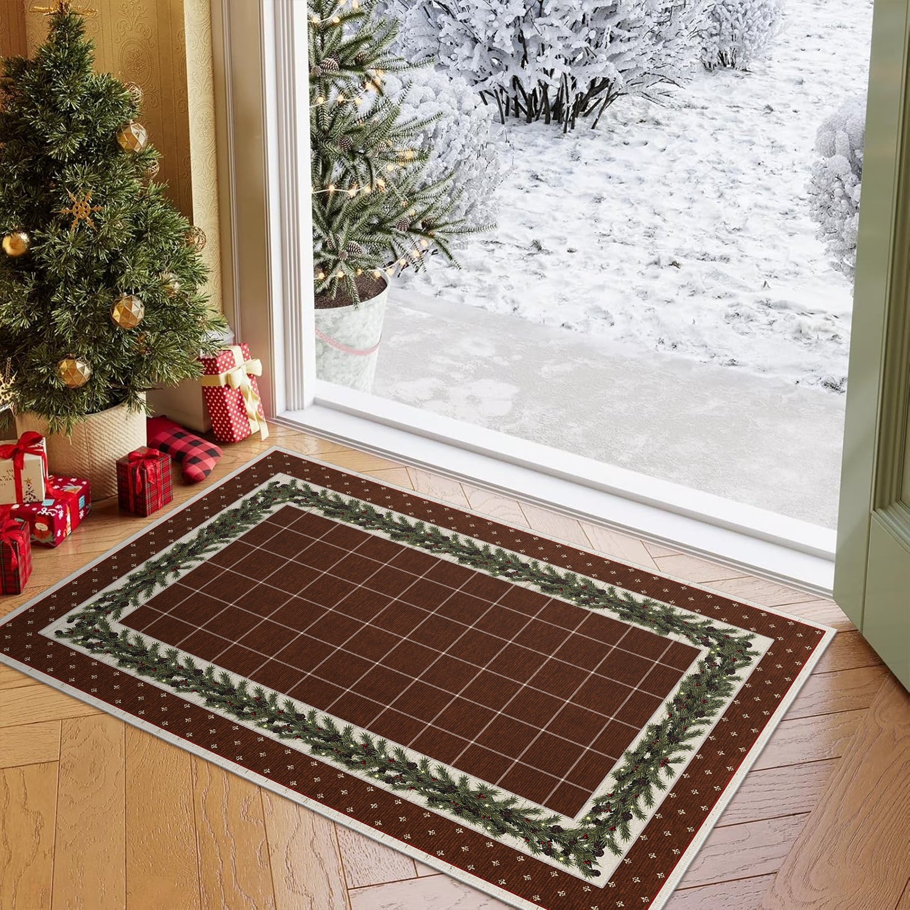 Brown Modern Geometrical Machine Washable Cotton Area Rug