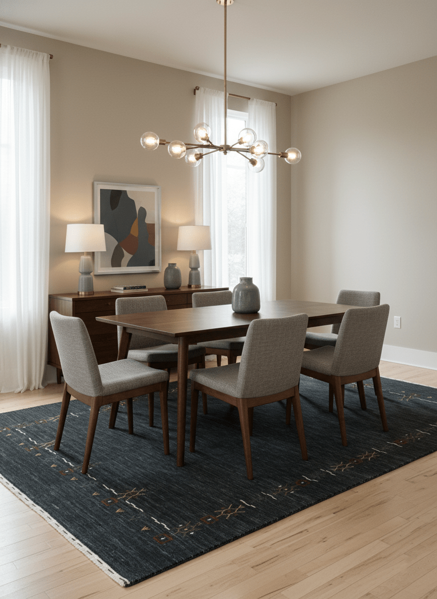 This hand-loomed wool area rug features a commanding charcoal tribal border with intricate geometric patterns rooted in traditional design. Constructed from durable natural fibers, it withstands heavy foot traffic while maintaining its rich appearance. The sophisticated aesthetic elevates any space, offering collectors a functional art piece that bridges cultural heritage with contemporary interior design.