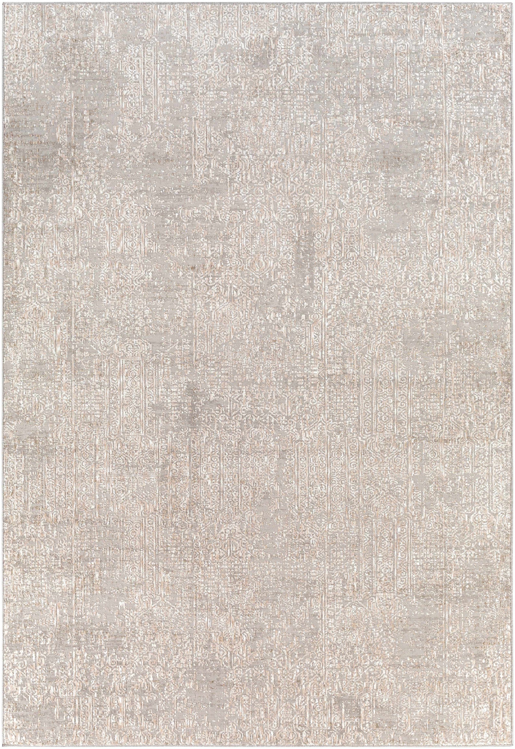 Modern gray area rug crafted with machine-woven precision for lasting durability. Its neutral tone seamlessly integrates into contemporary spaces while resisting wear in busy households. Practical elegance redefined.
