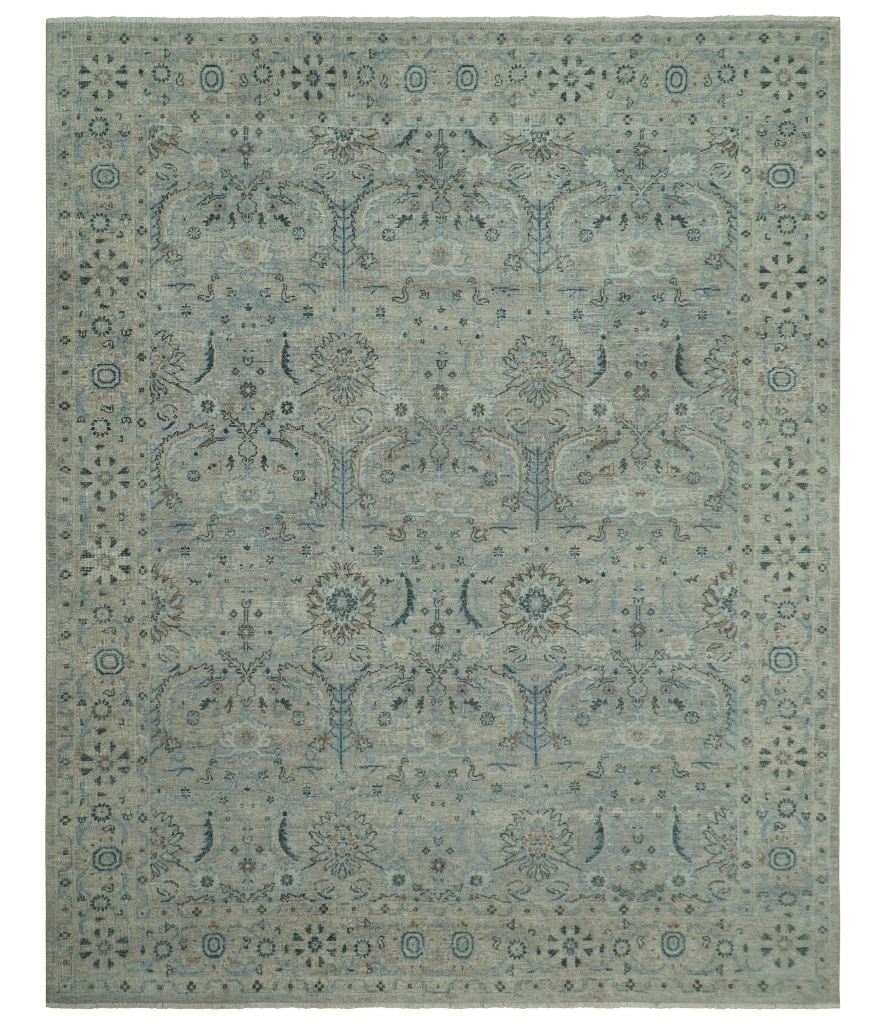 Custom Made Silver And Blue Traditional Oriental Design Hand knotted Wool Area Rug