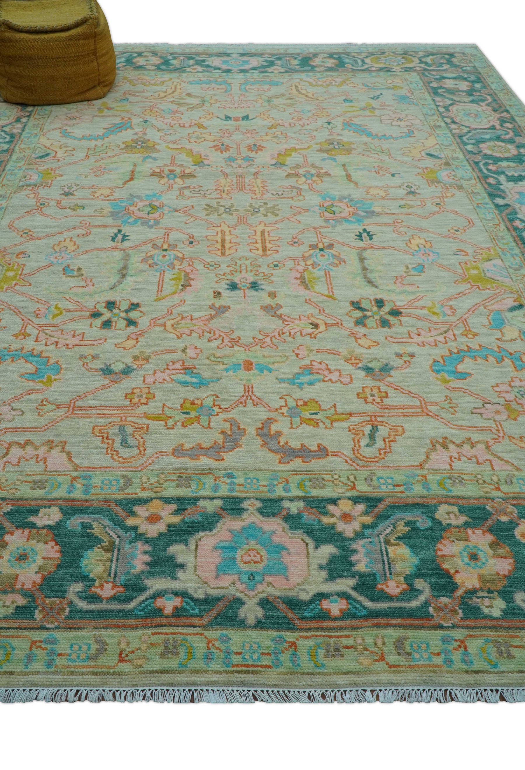 This hand-knotted wool area rug features an authentic Oushak design in warm beige tones. Crafted with traditional techniques, each piece is custom-made to your specifications, ensuring a unique, heirloom-quality addition to any room with timeless elegance and durability.